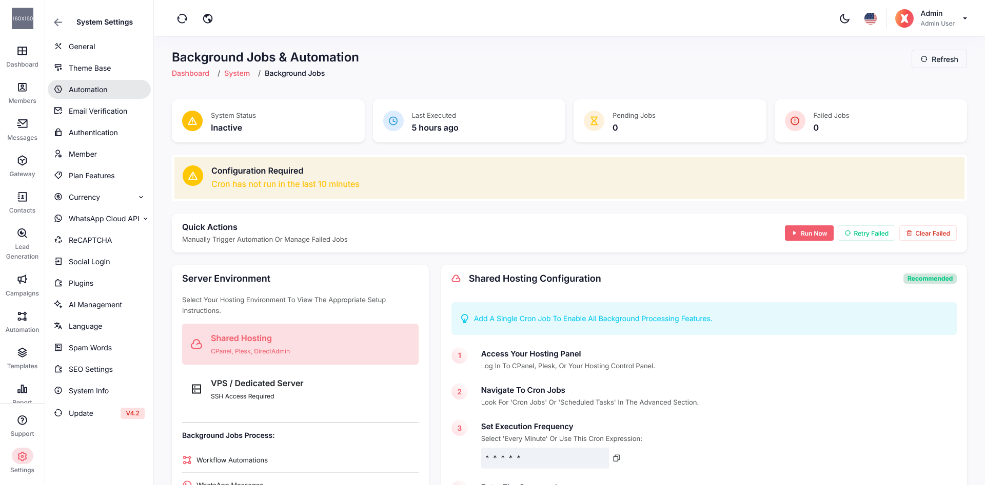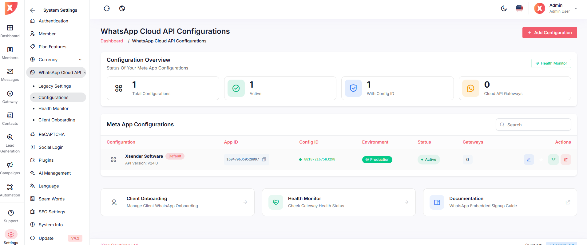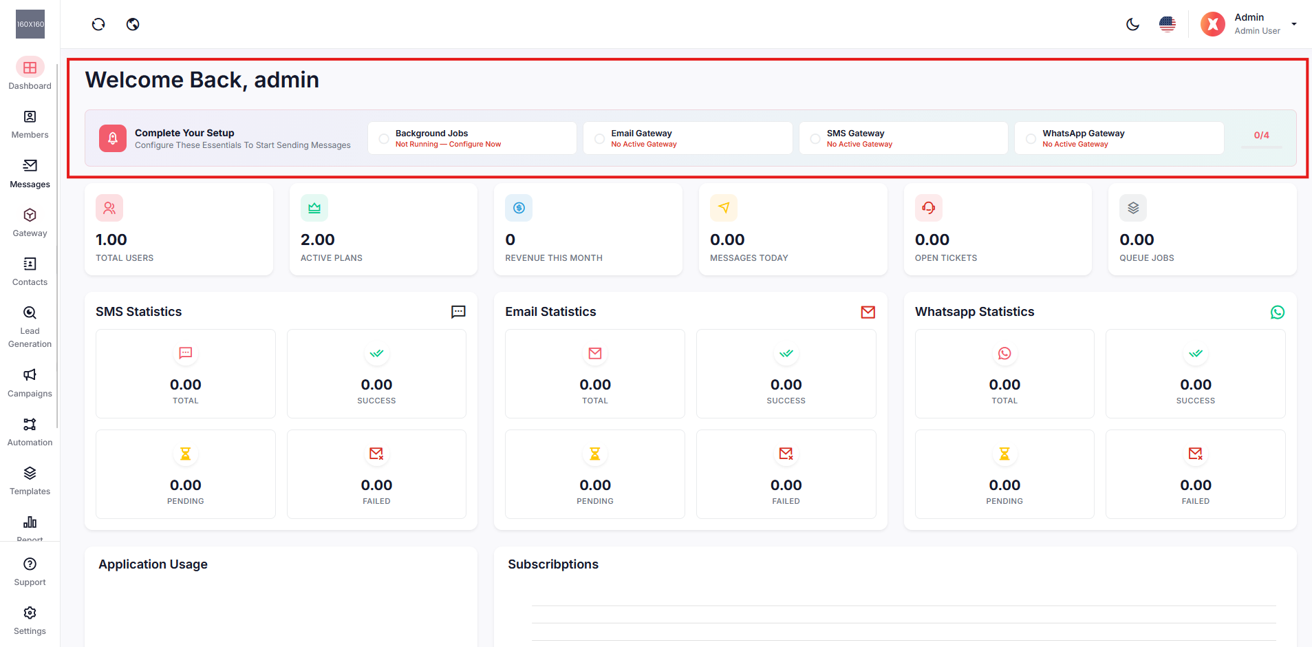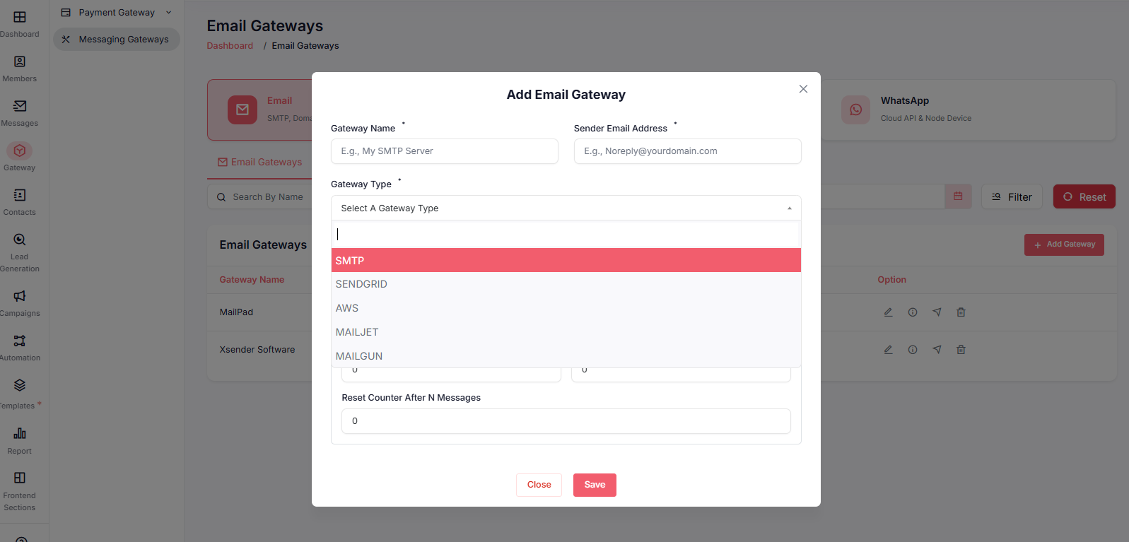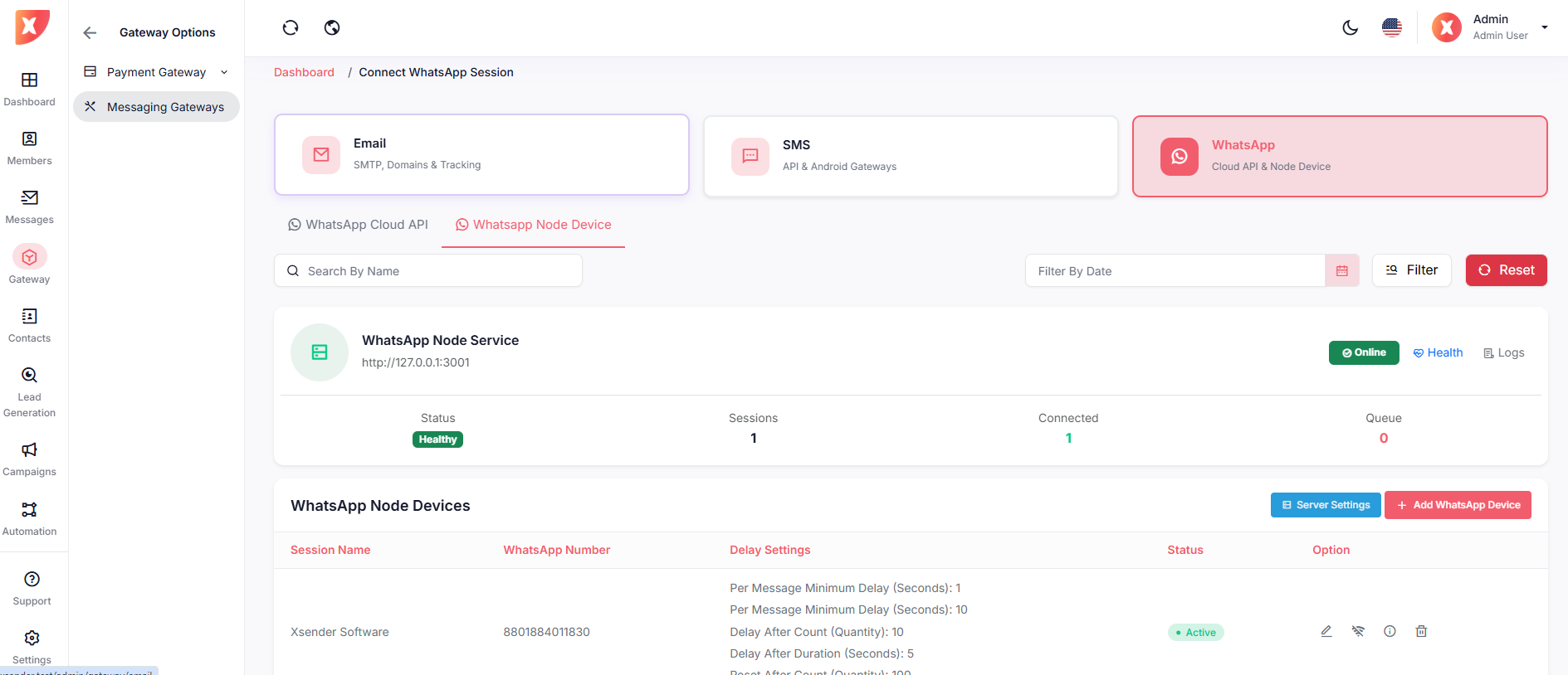 Admin Panel → Gateway → Messaging Gateways → WhatsApp Tab