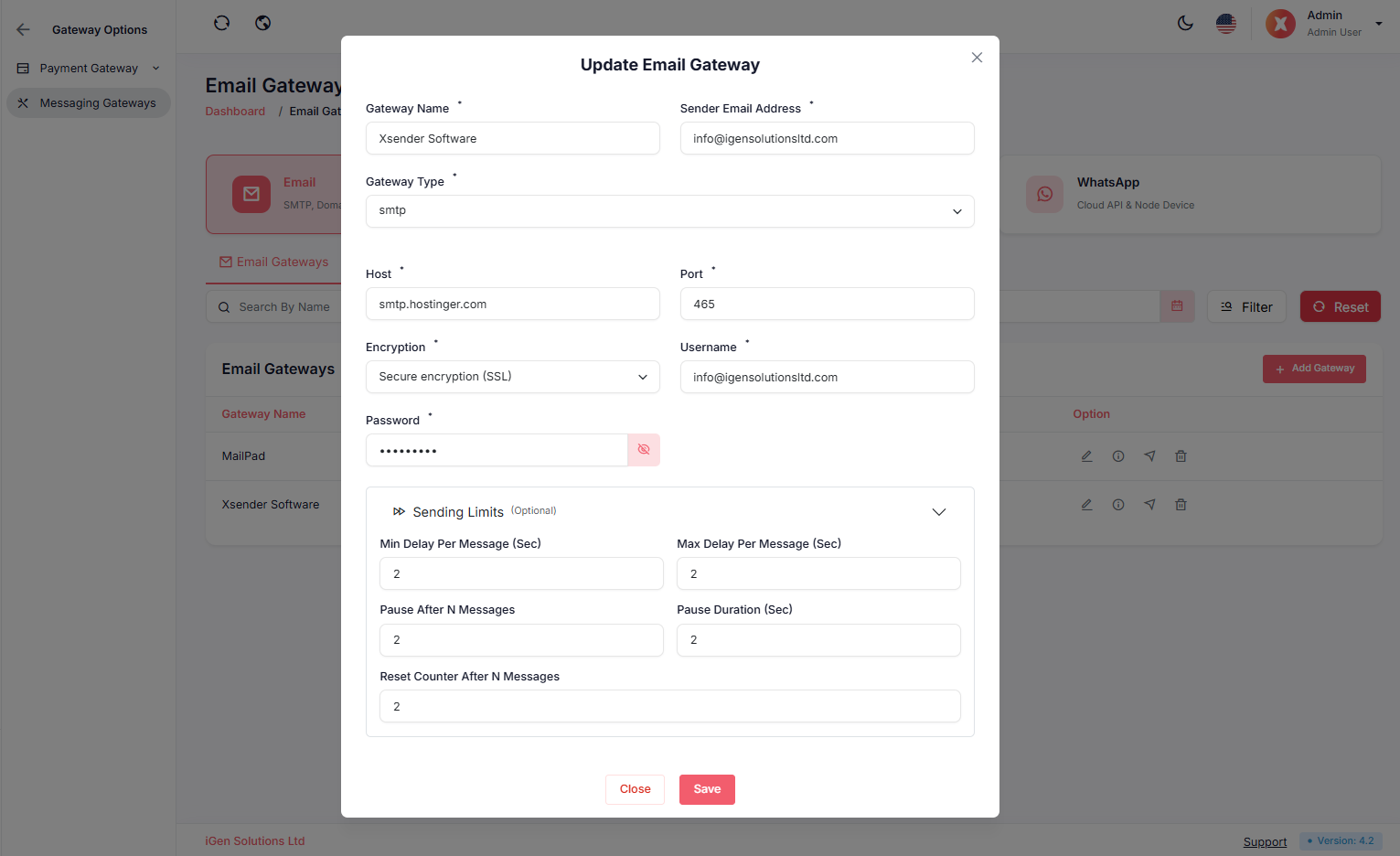 Admin Panel → Gateway → Email Gateways