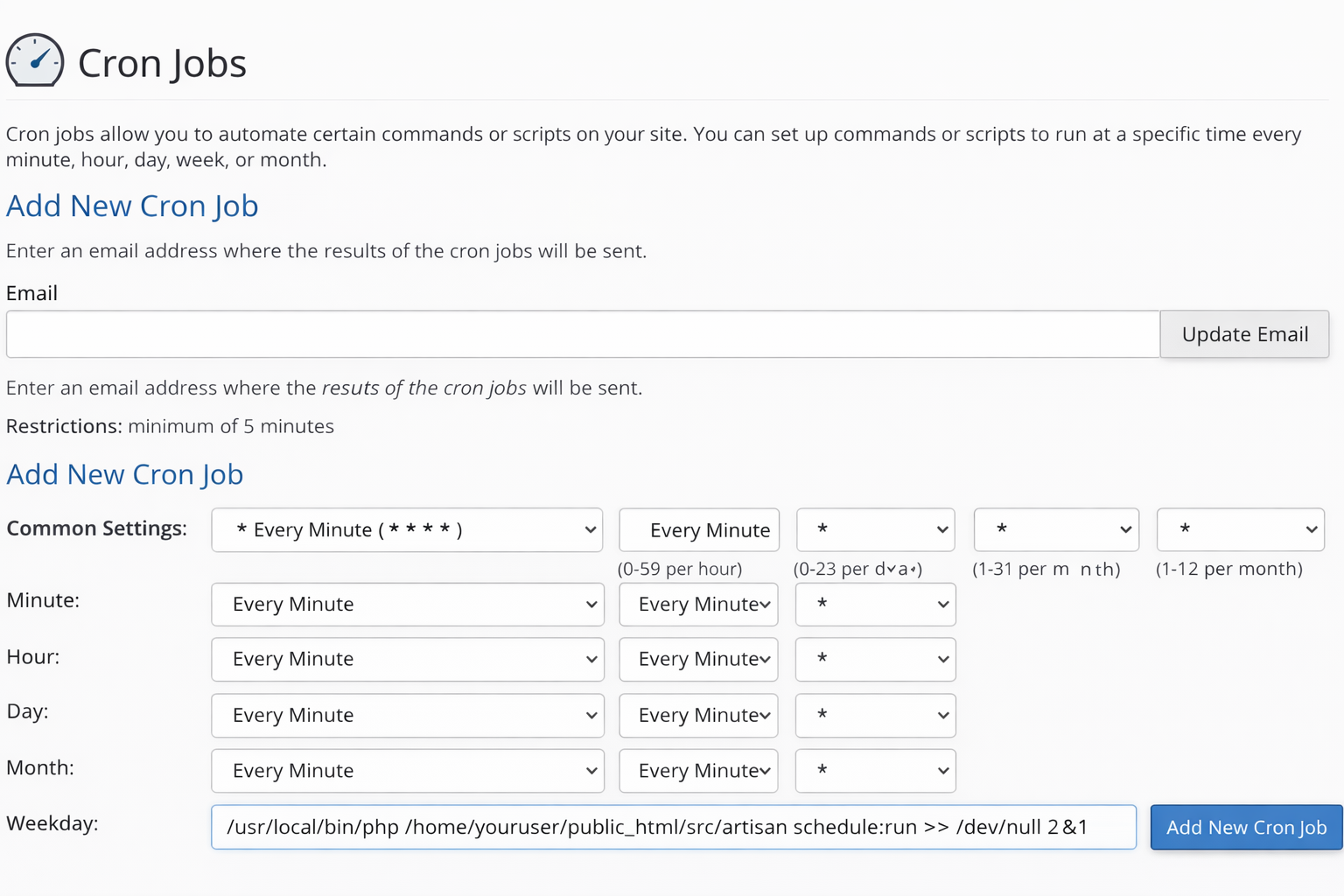 Go to cPanel → Cron Jobs