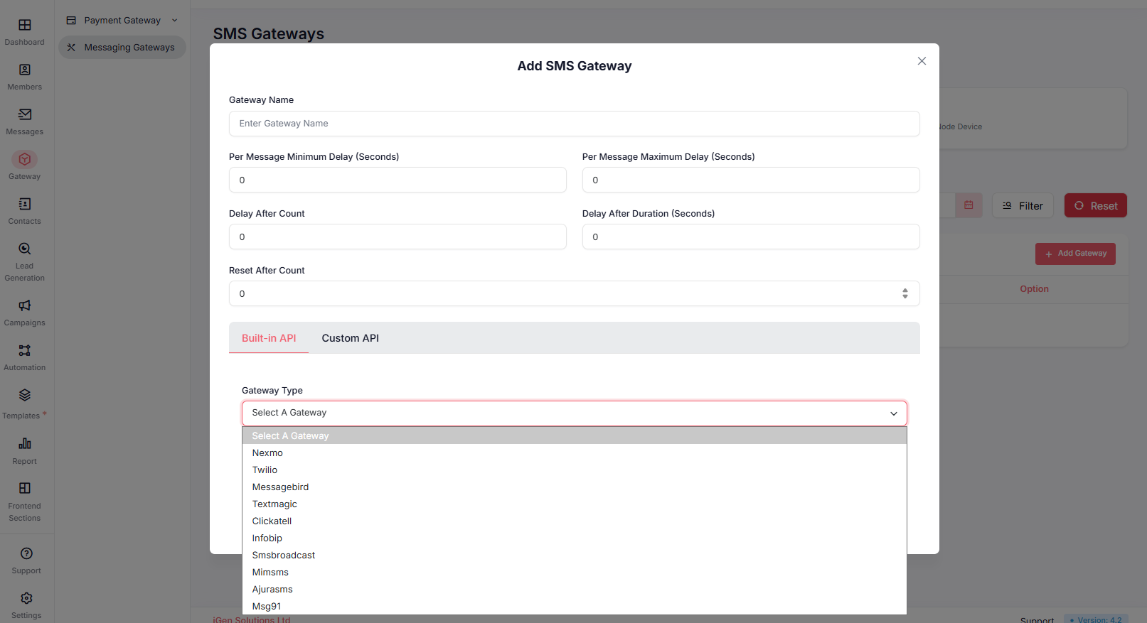Admin Panel → Gateway → SMS Gateways