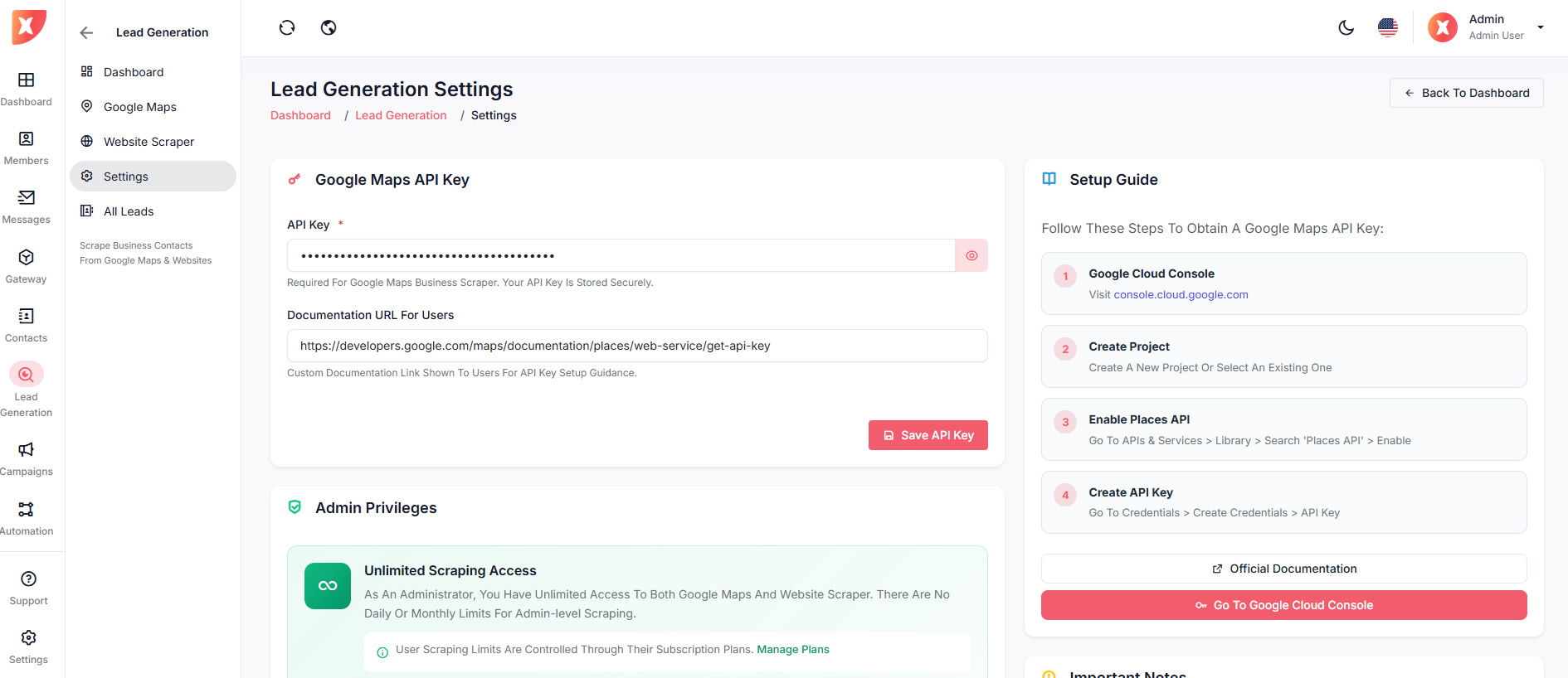 Lead generation lets you and your users scrape business contact information from Google Maps and web sources. This is useful for finding potential customers.