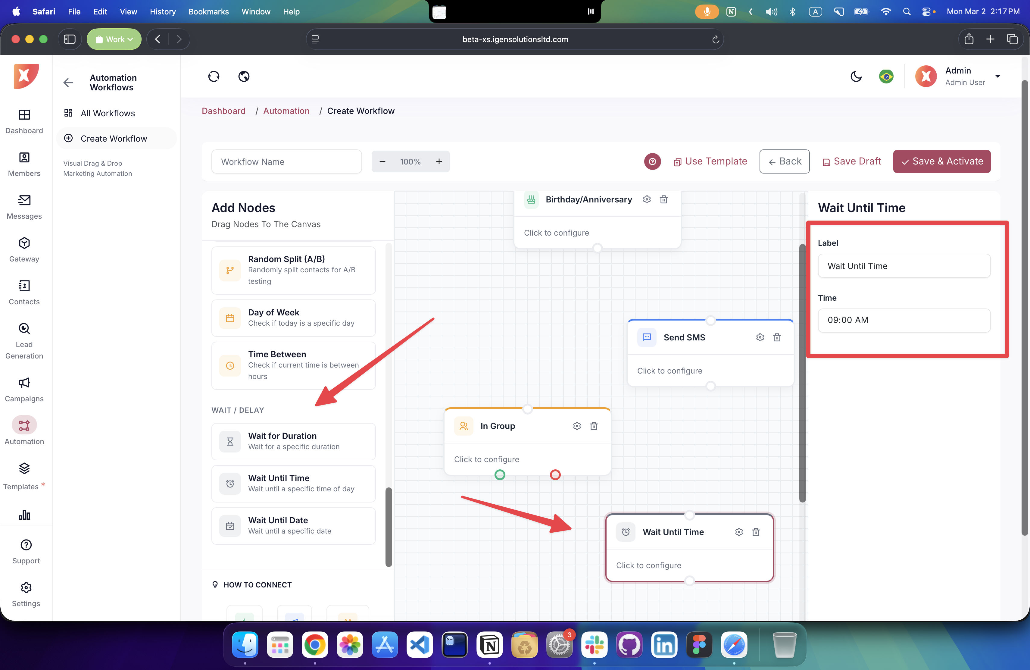 Finally, under the Wait or Delay section, drag the Wait Until Date node onto your canvas