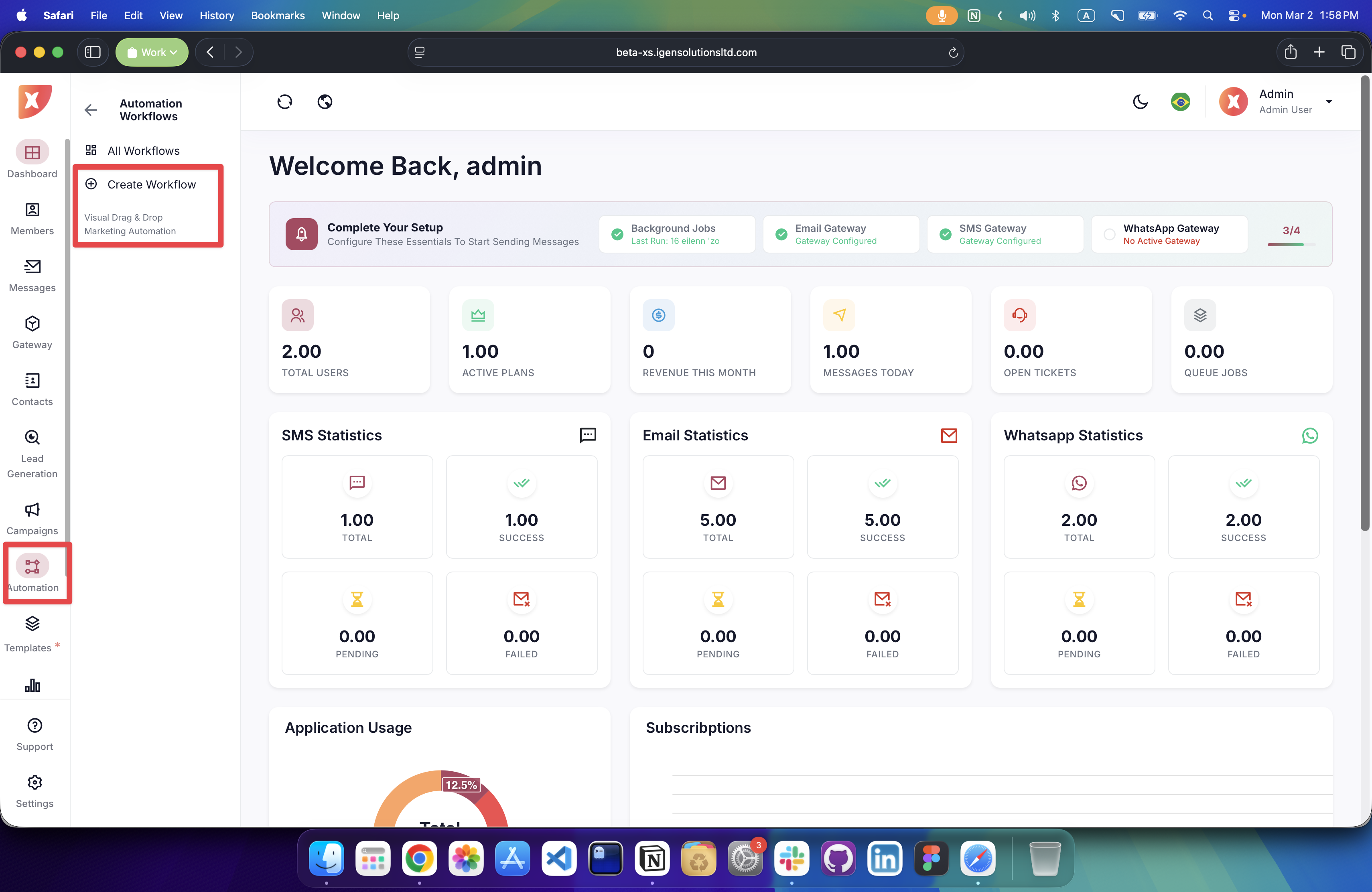 Starting from your dashboard, navigate to the left-hand menu, click on Automation Workflows, and then select Create Workflow.