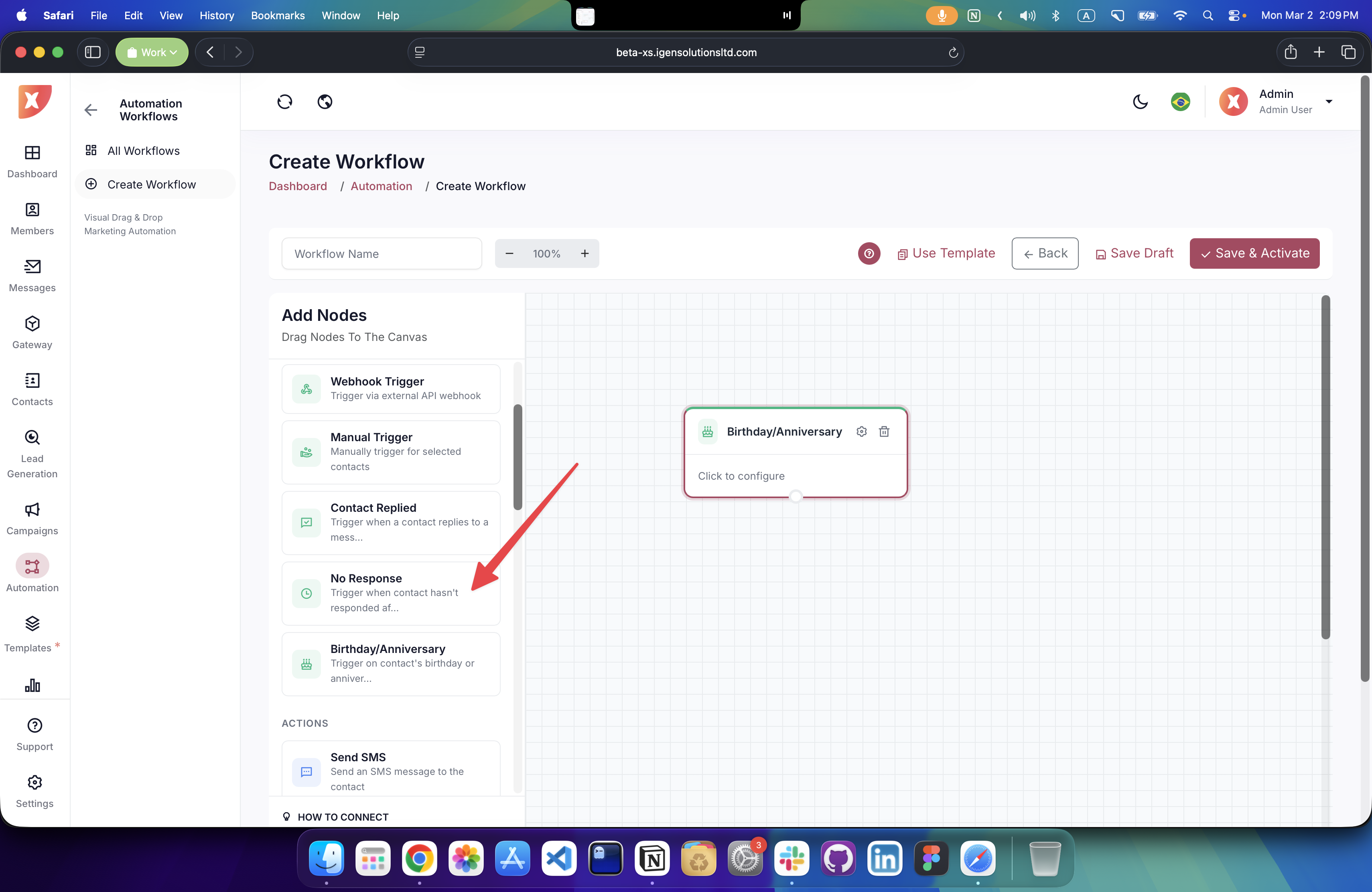 First, look at the left panel under Triggers. Grab the Birthday or Anniversary trigger and drop it onto your canvas .