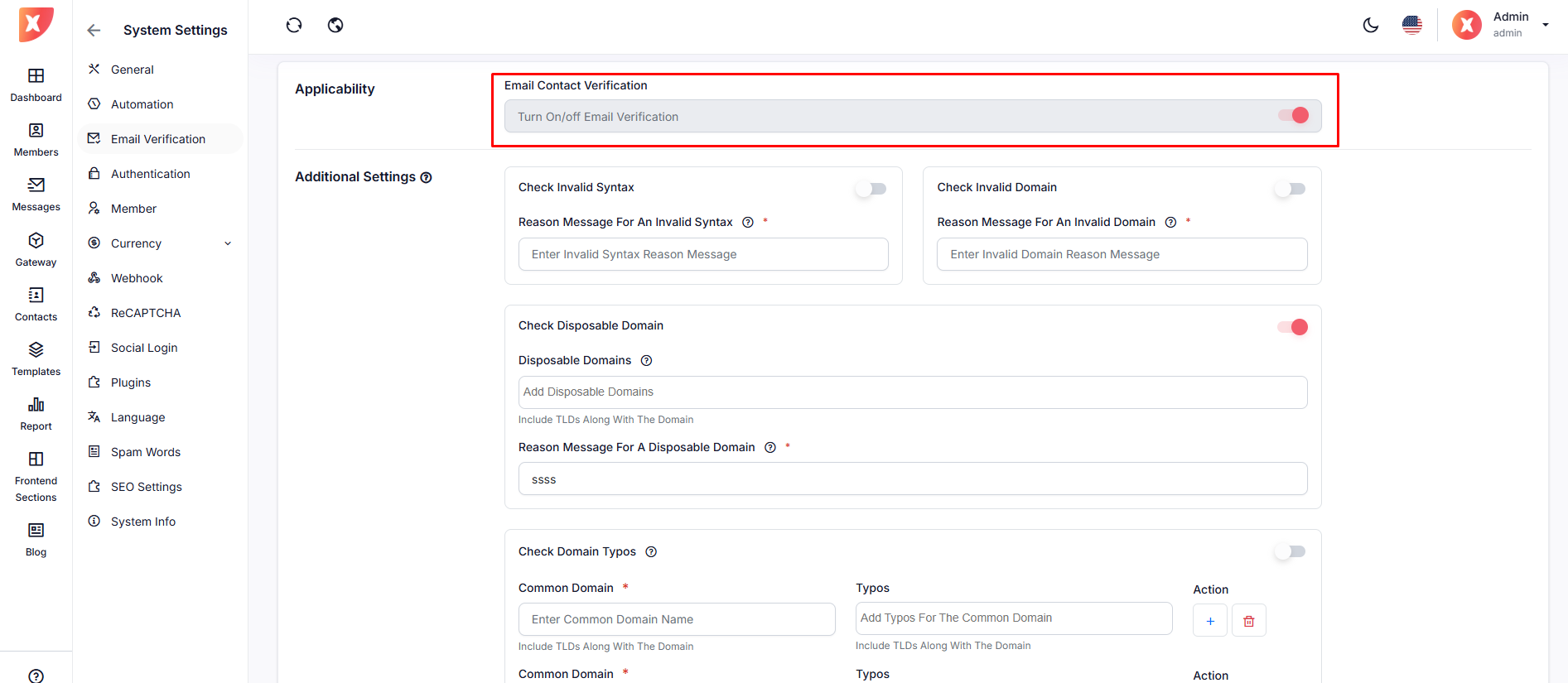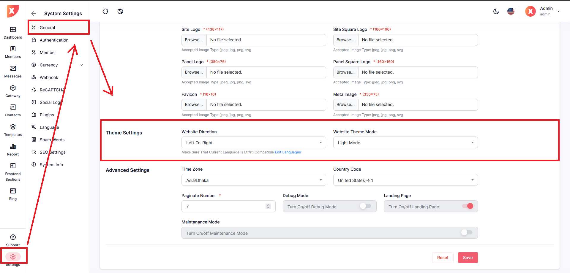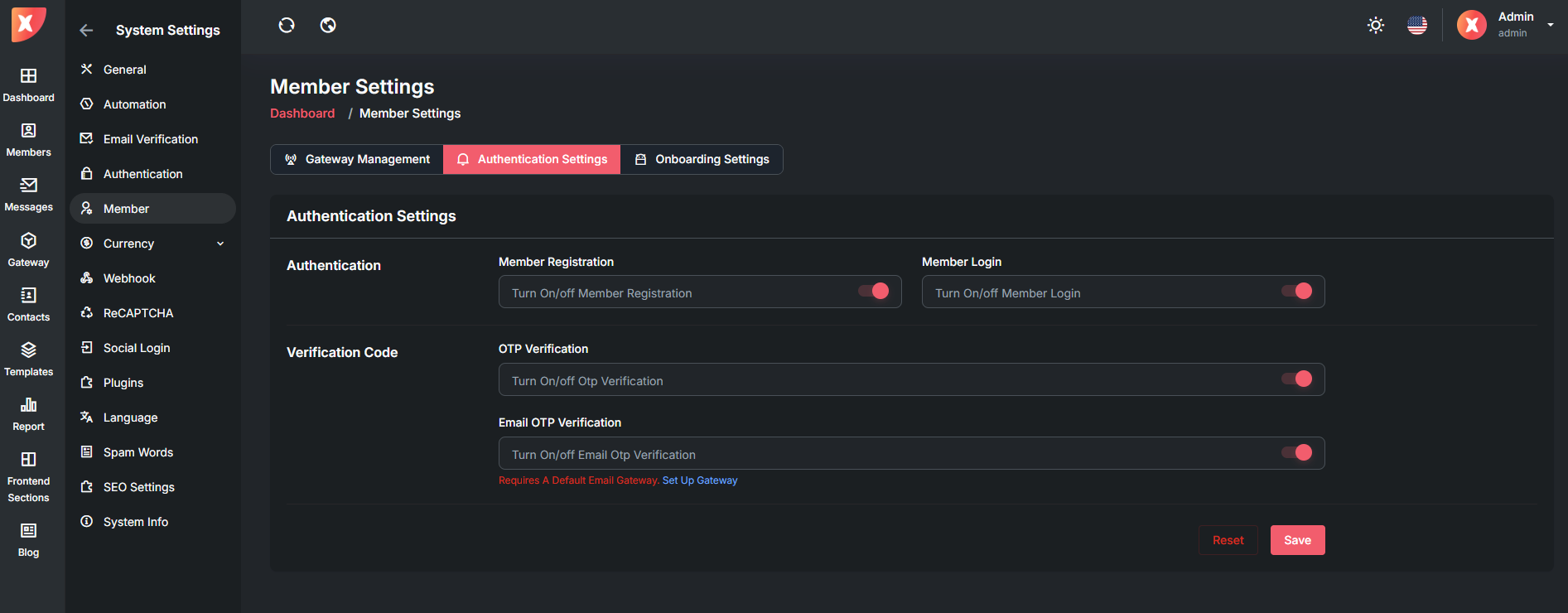Location: System Settings > Member > Gateway Management