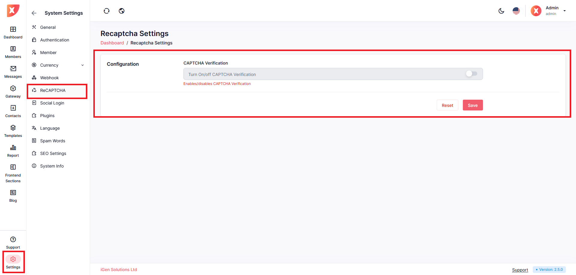 To configure your ReCAPTCHA, navigate to Settings > ReCAPTCH