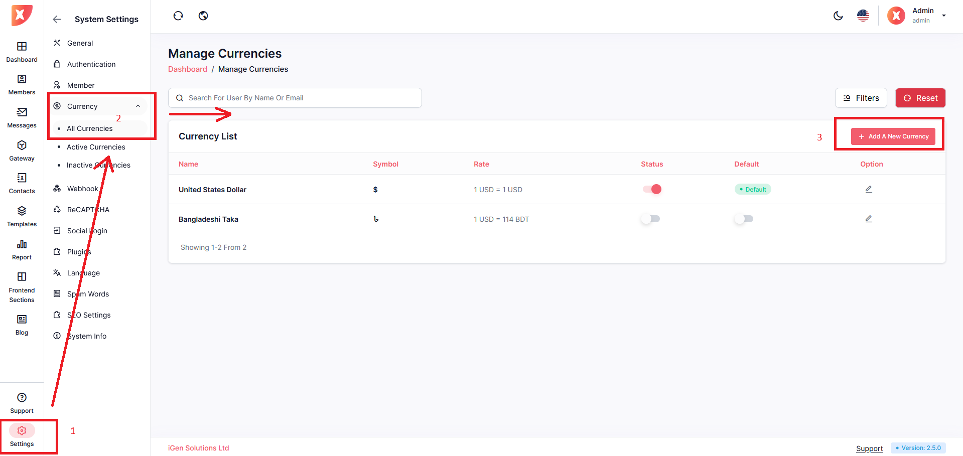 To add a new currency, click on Add a New Currency