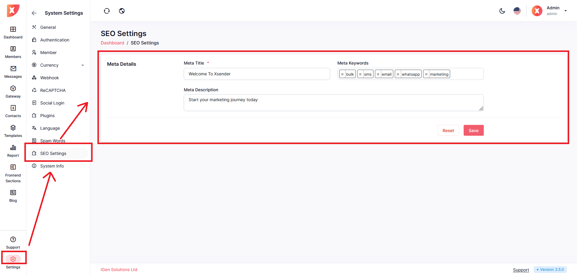 Set up your SEO setting. Navigate to Settings > SEO Settings