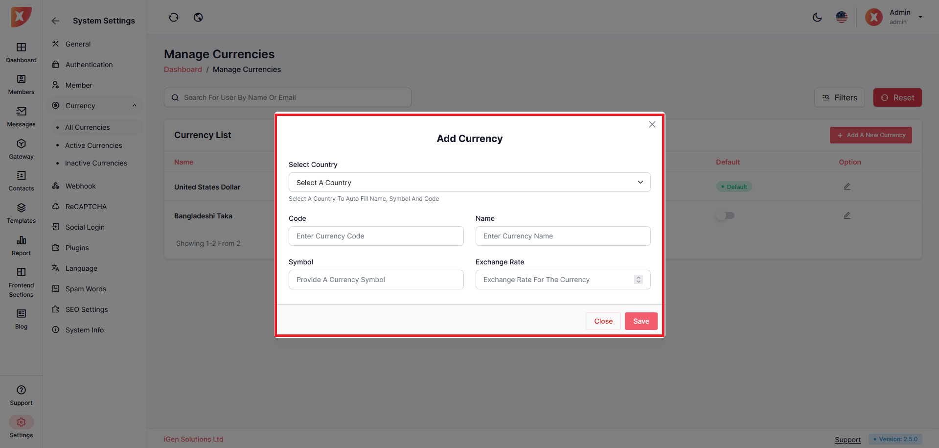 Note: You can not delete currency once added, as deleting would disrupt the calculation and can affect another module. However, if you wish not to use a specific currency simply change its status, it will disable it.