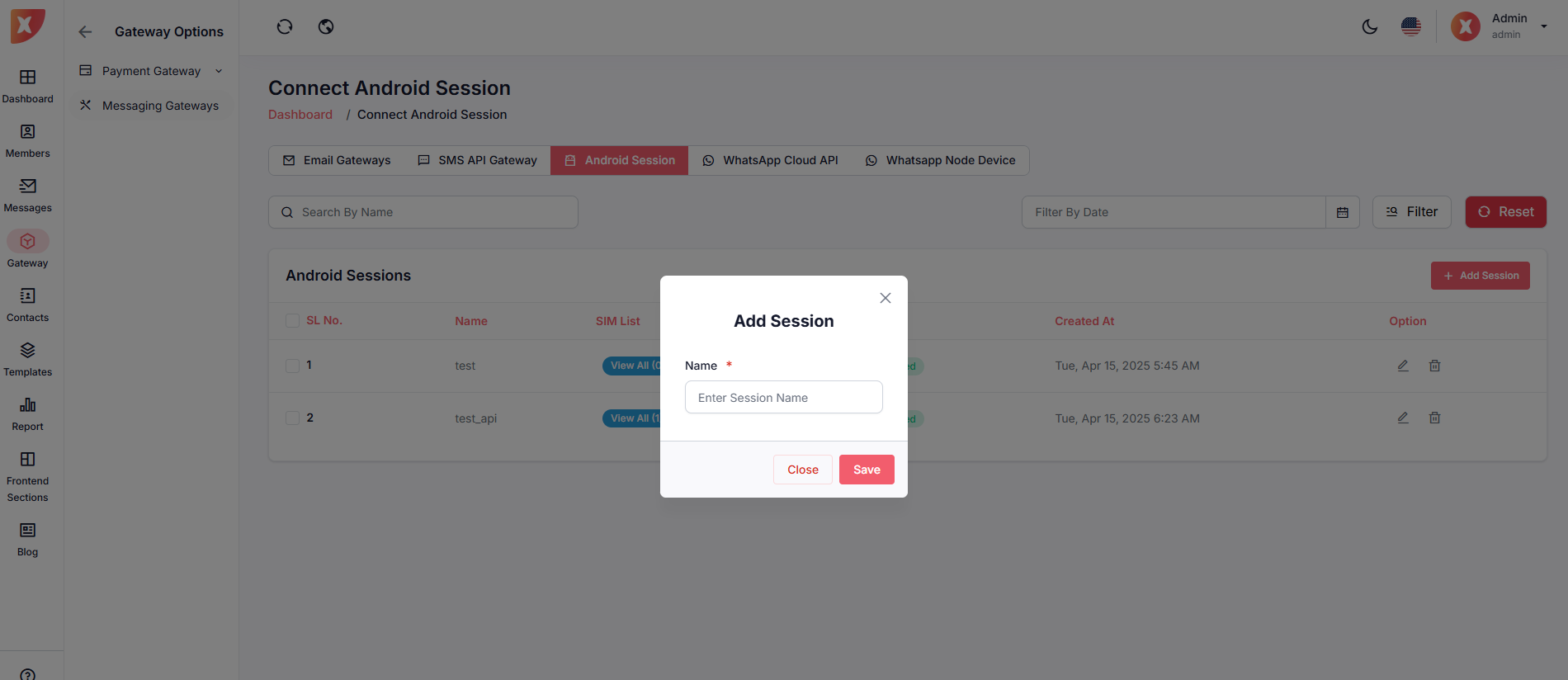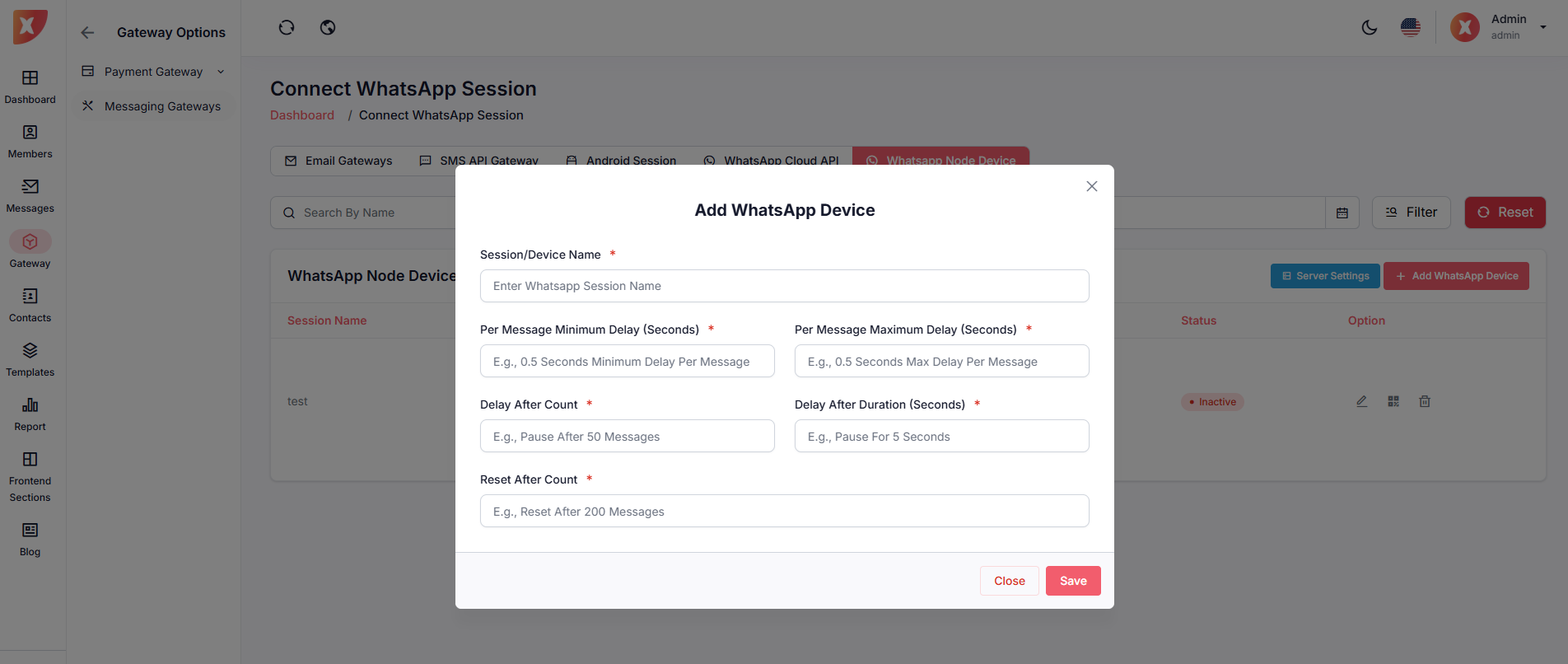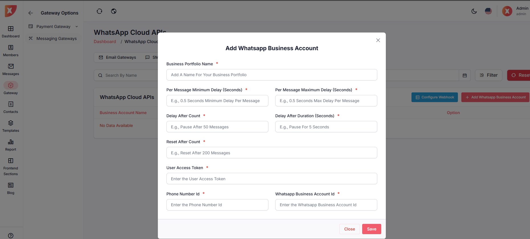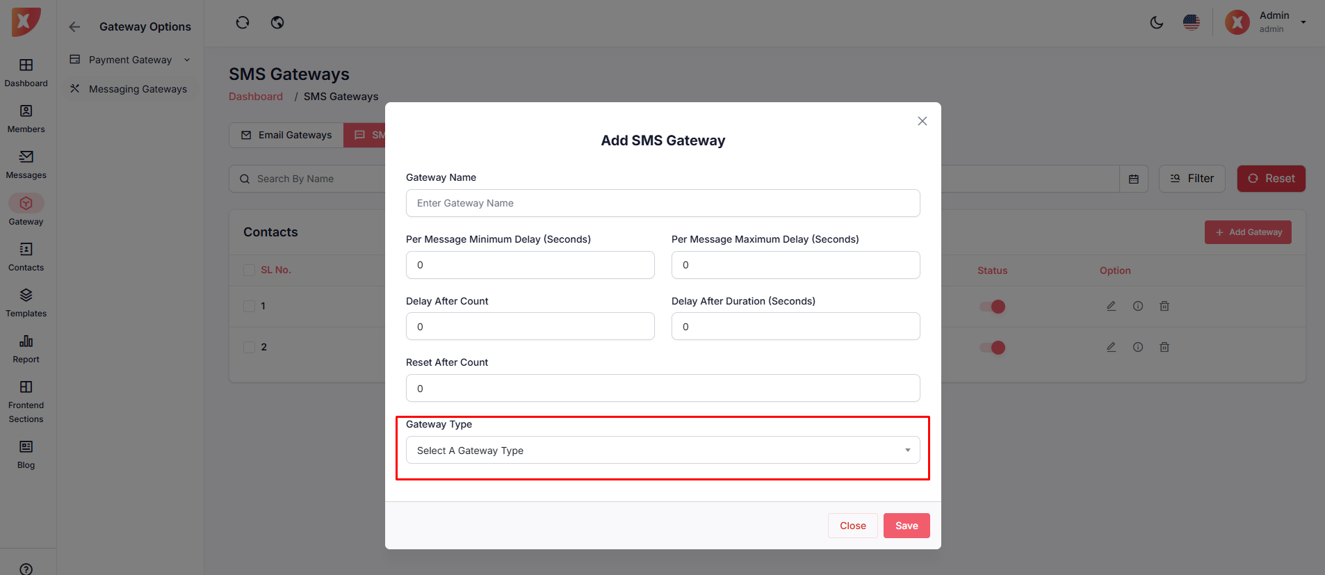 Step 2: Select your SMS Gateway & fill out the necessary credentials, then save it