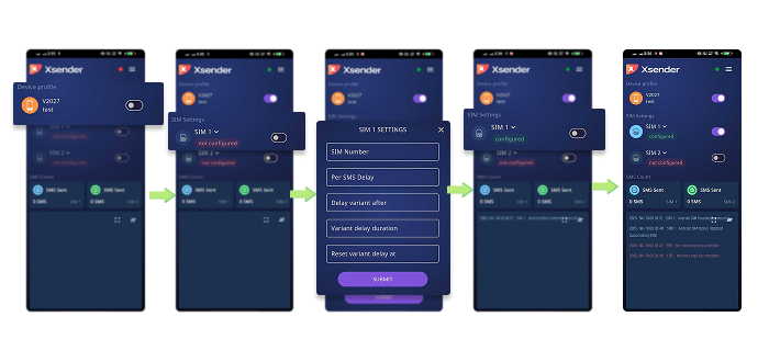 Step 5: Now set your Android device sim for the application and turn on the sims and the app will start looking for available SMS that has used the Android Gateway.