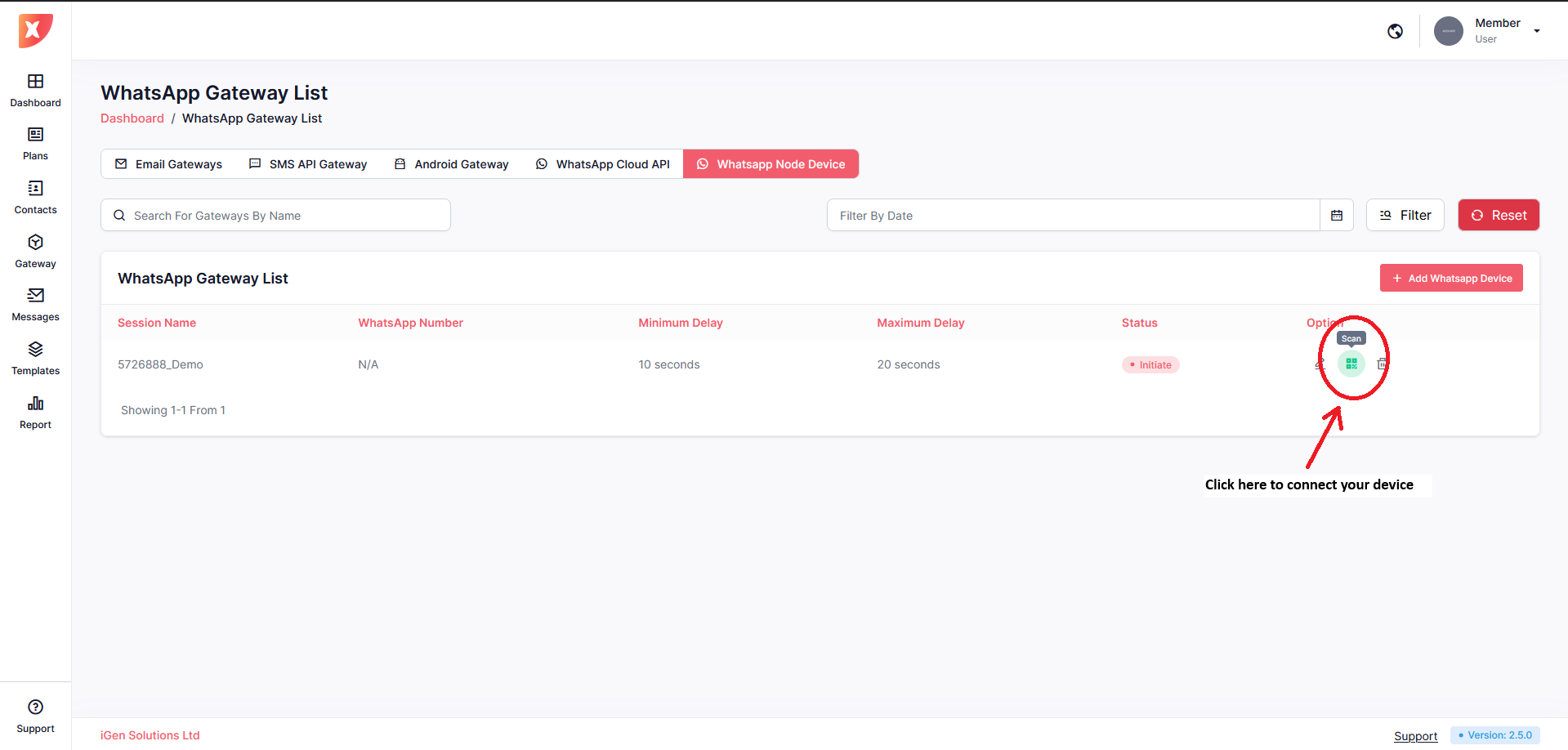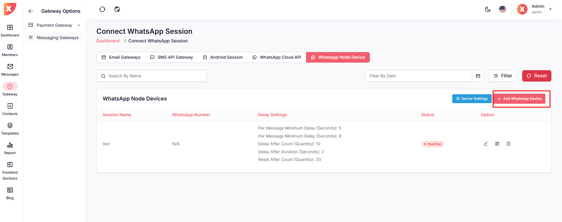 Click on the Whatsapp Node Device tab