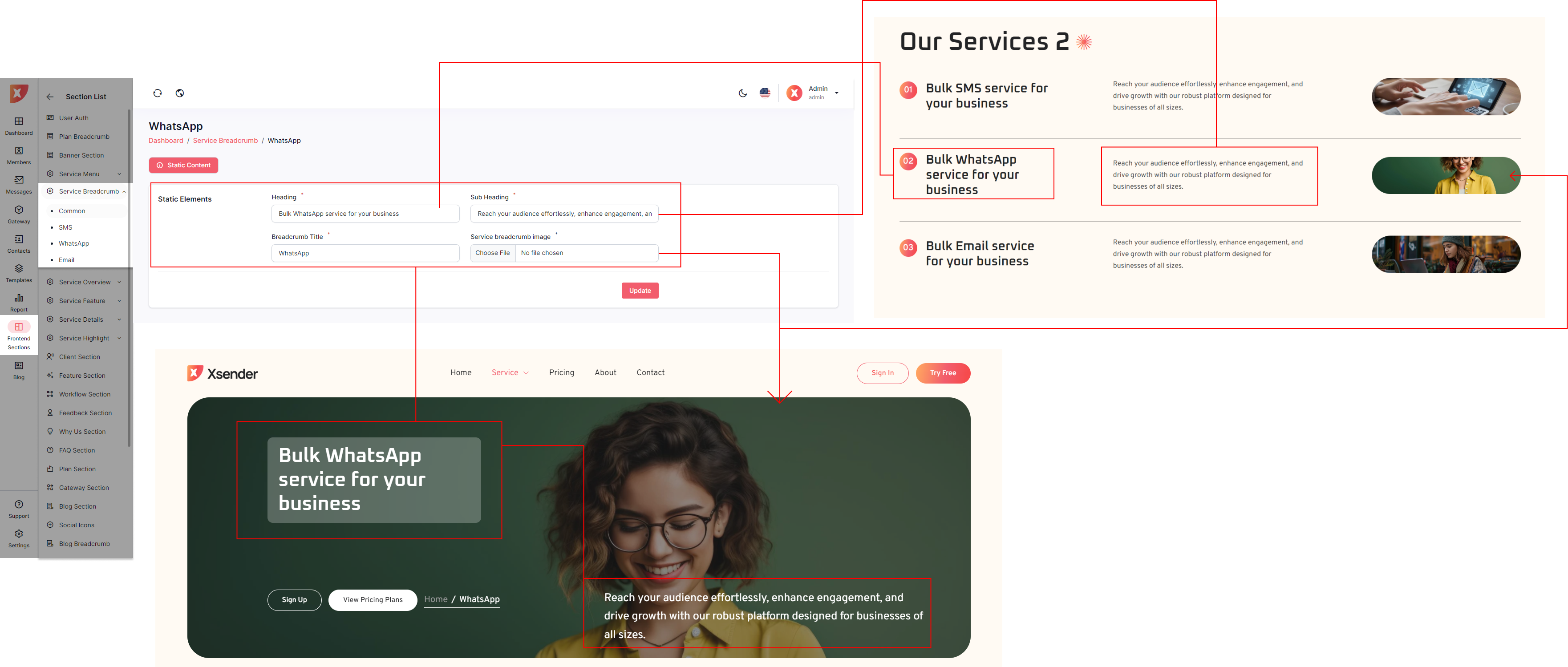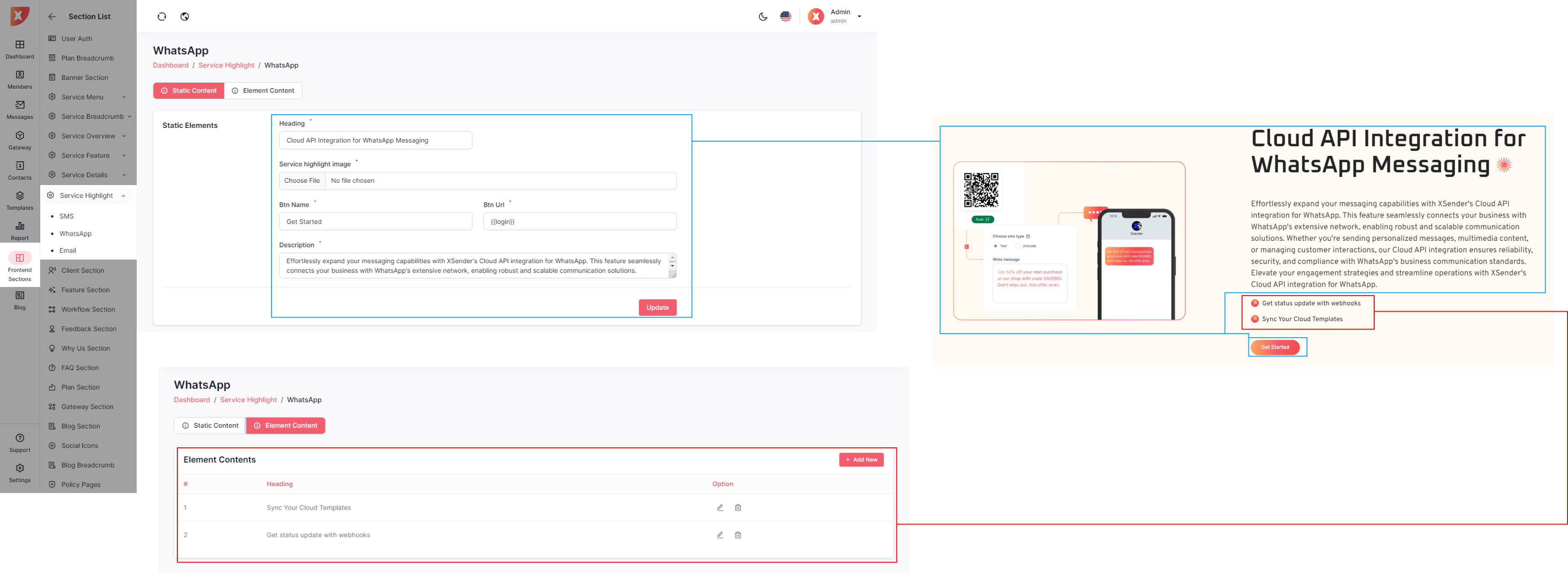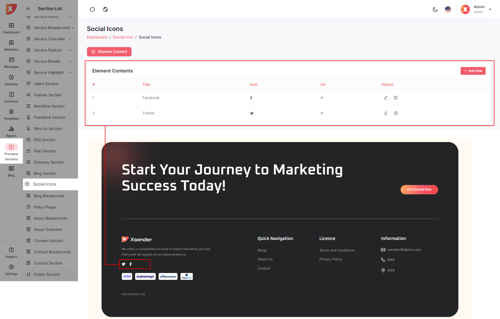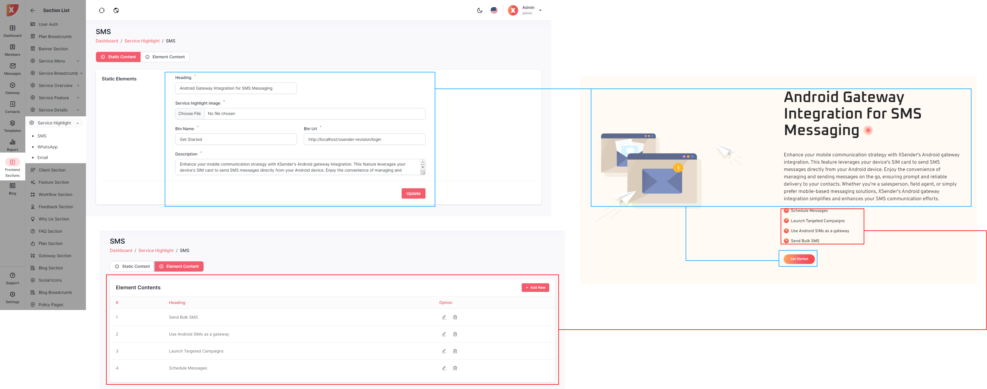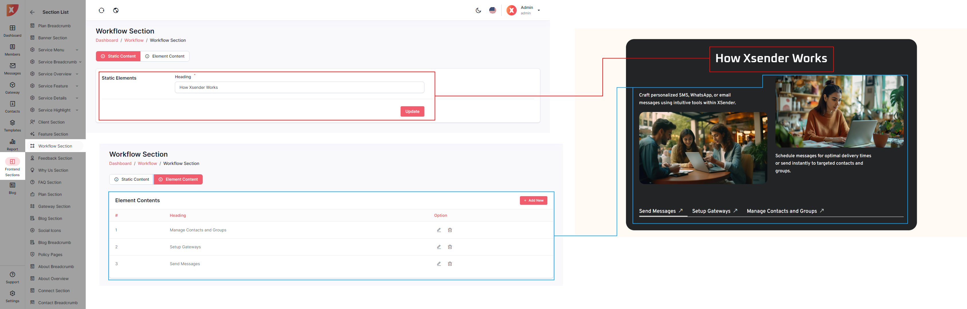 The admin panel in XSender allows administrators to easily customize elements of the landing page, providing full control over its appearance and content. Admins can update text, images, and layout configurations to align with branding needs and marketing strategies. This flexibility ensures the landing page can be tailored to attract and engage visitors effectively, enhancing the overall user experience.