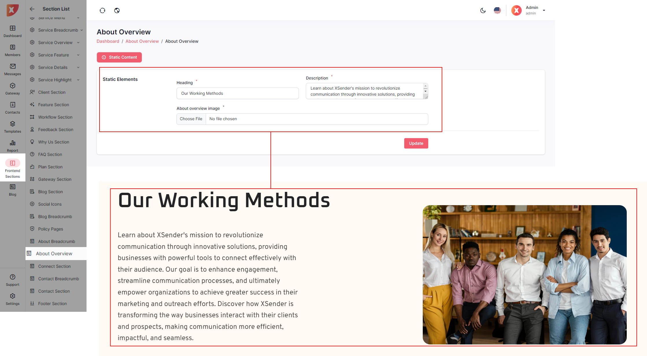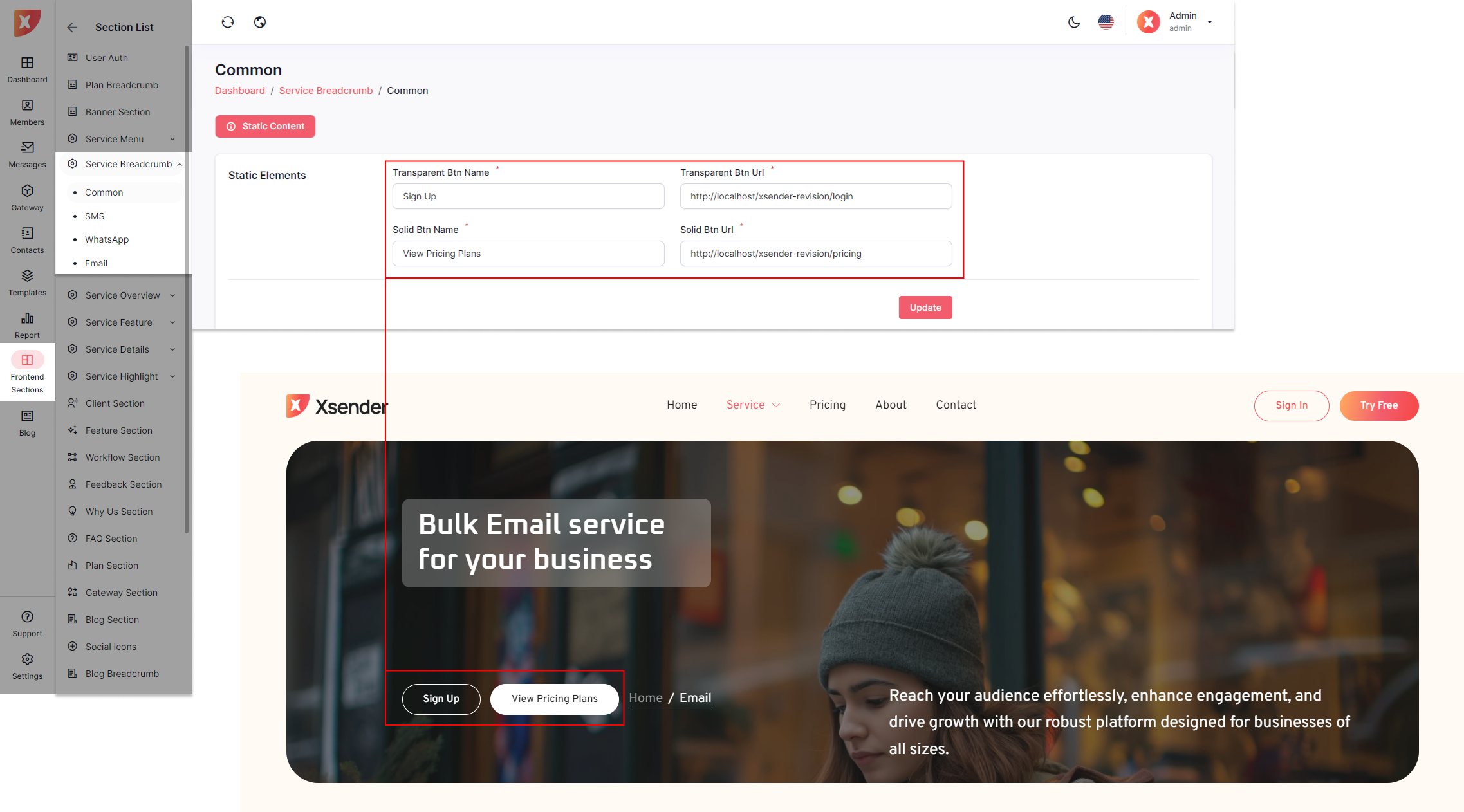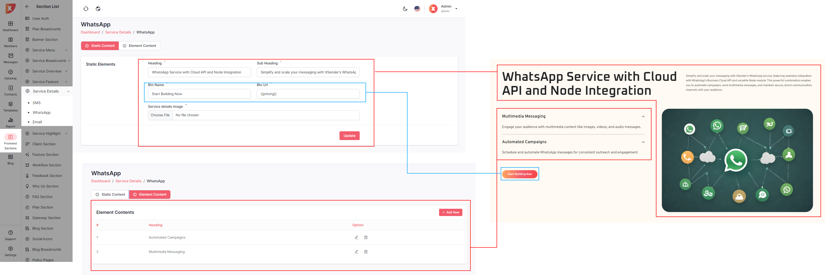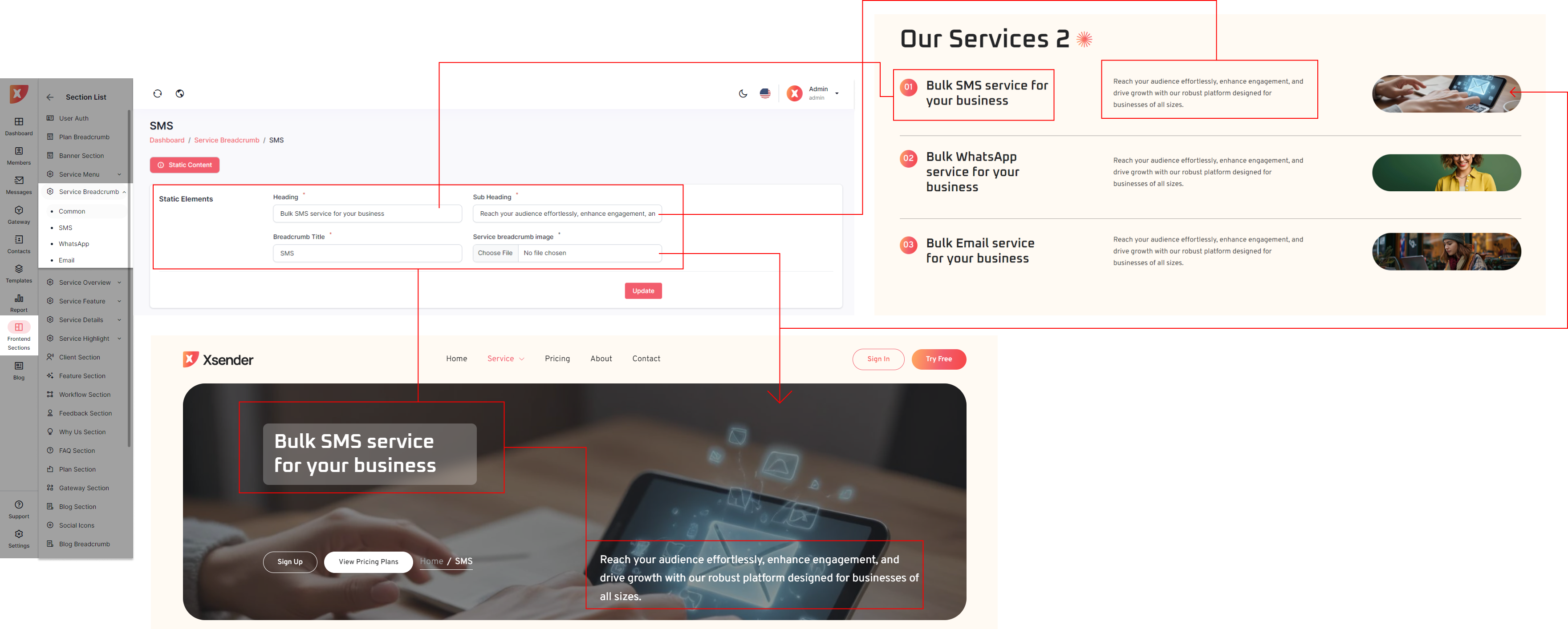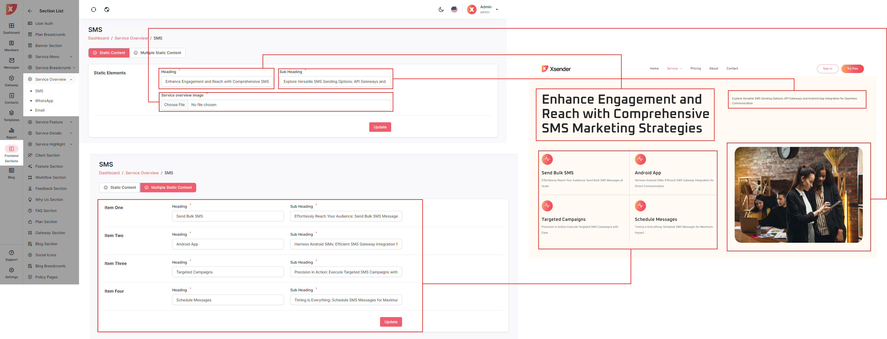 The admin panel in XSender allows administrators to easily customize elements of the landing page, providing full control over its appearance and content. Admins can update text, images, and layout configurations to align with branding needs and marketing strategies. This flexibility ensures the landing page can be tailored to attract and engage visitors effectively, enhancing the overall user experience.