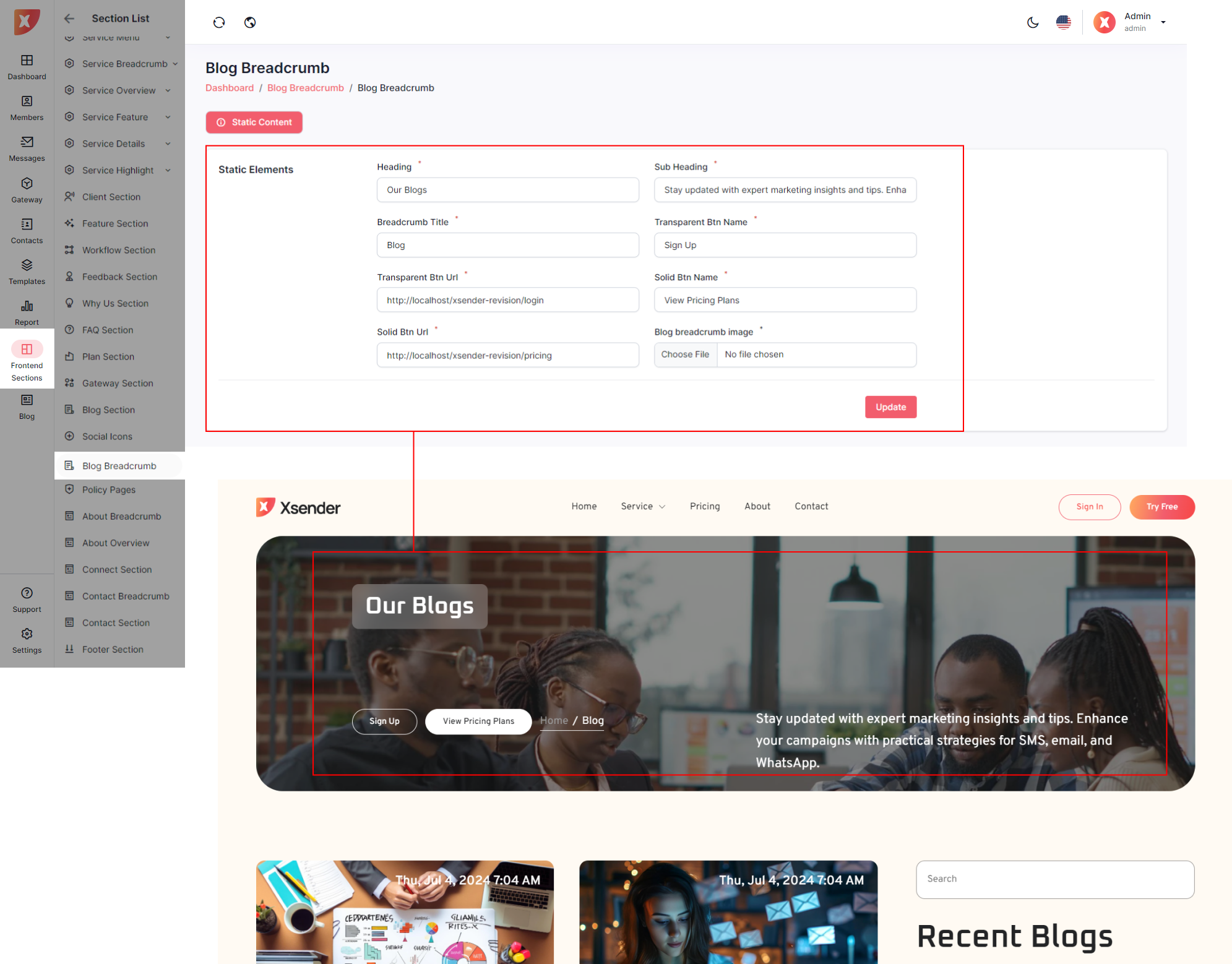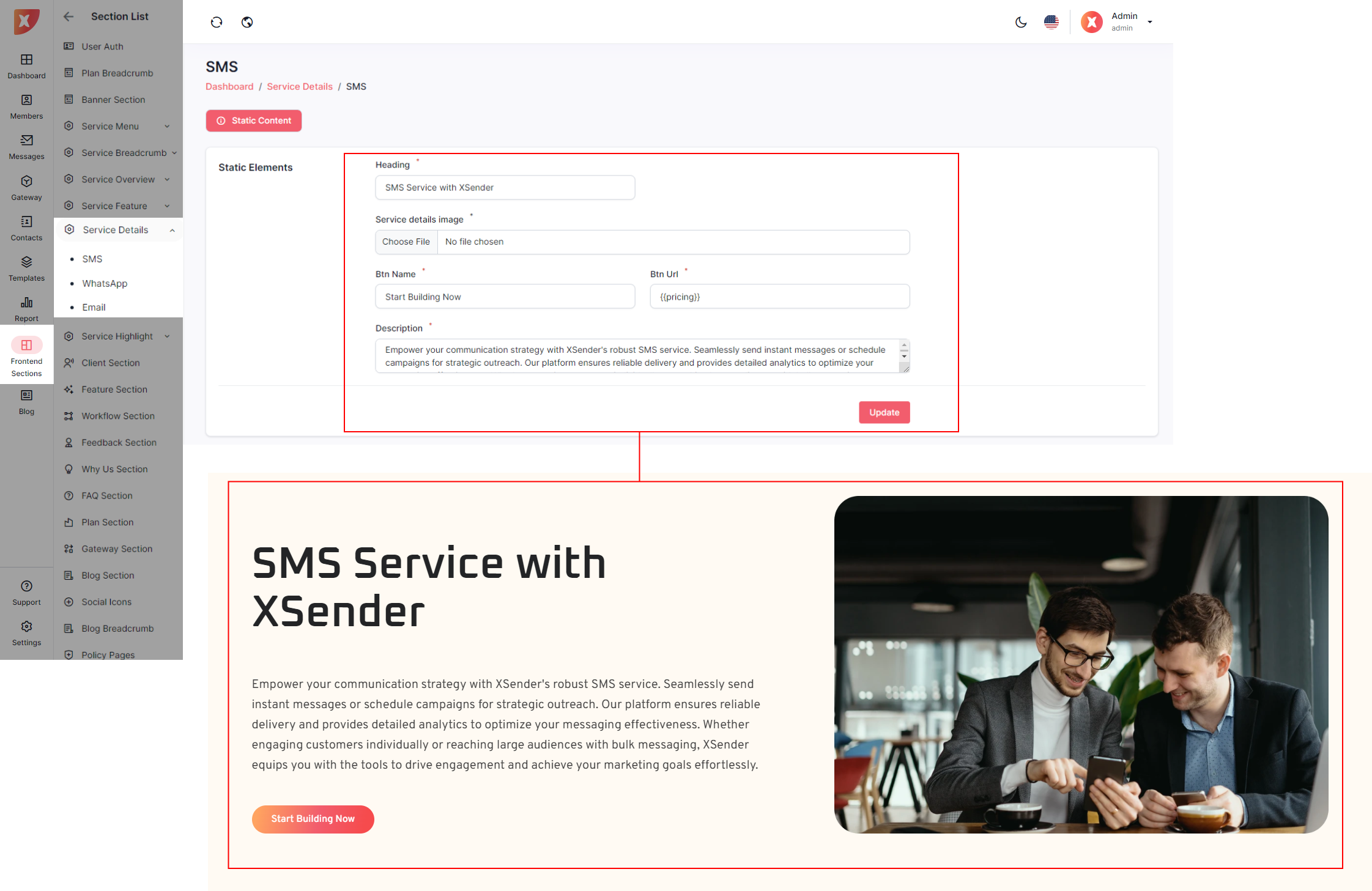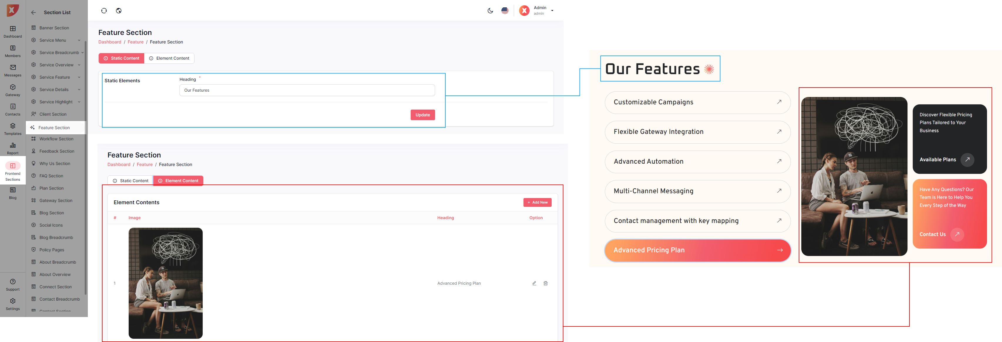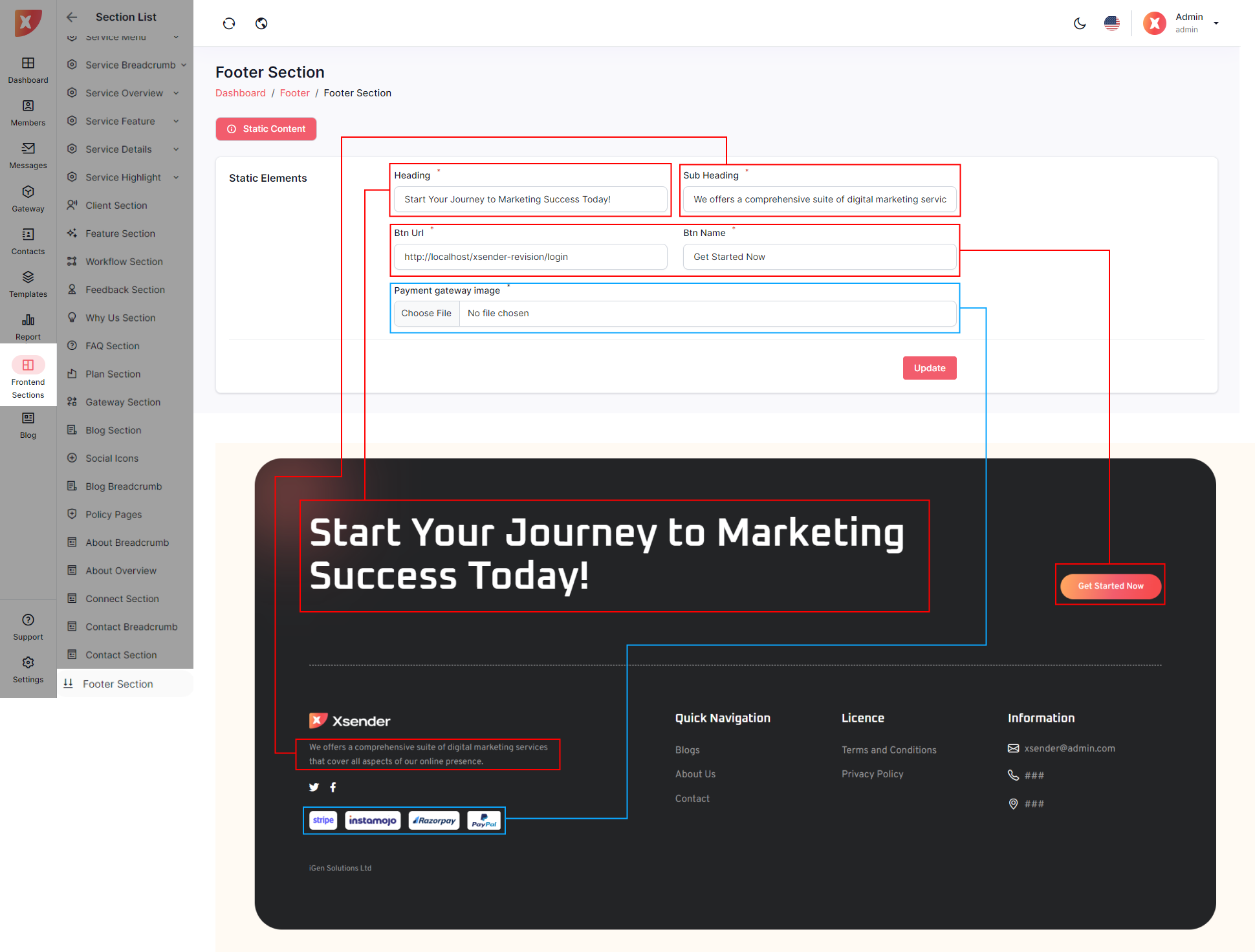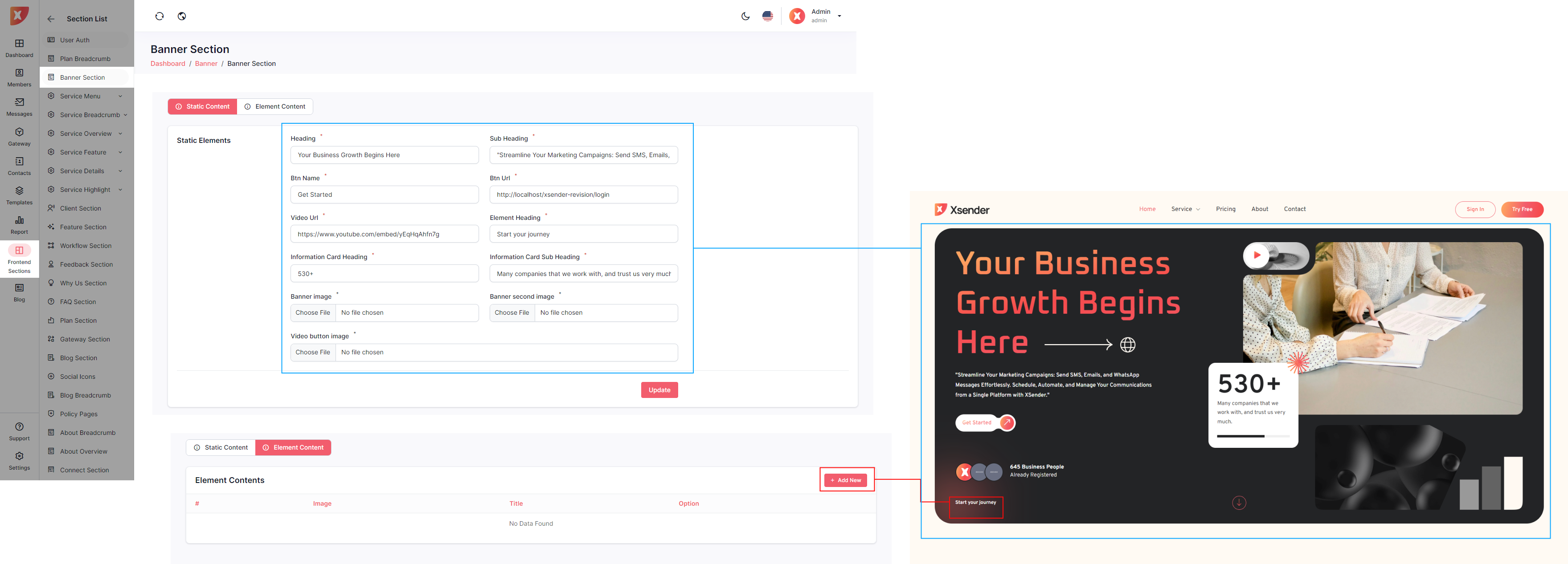 Below are the individual sections that can be updated from the Admin Panel, offering admins the flexibility to enhance the landing page according to their specific requirements.