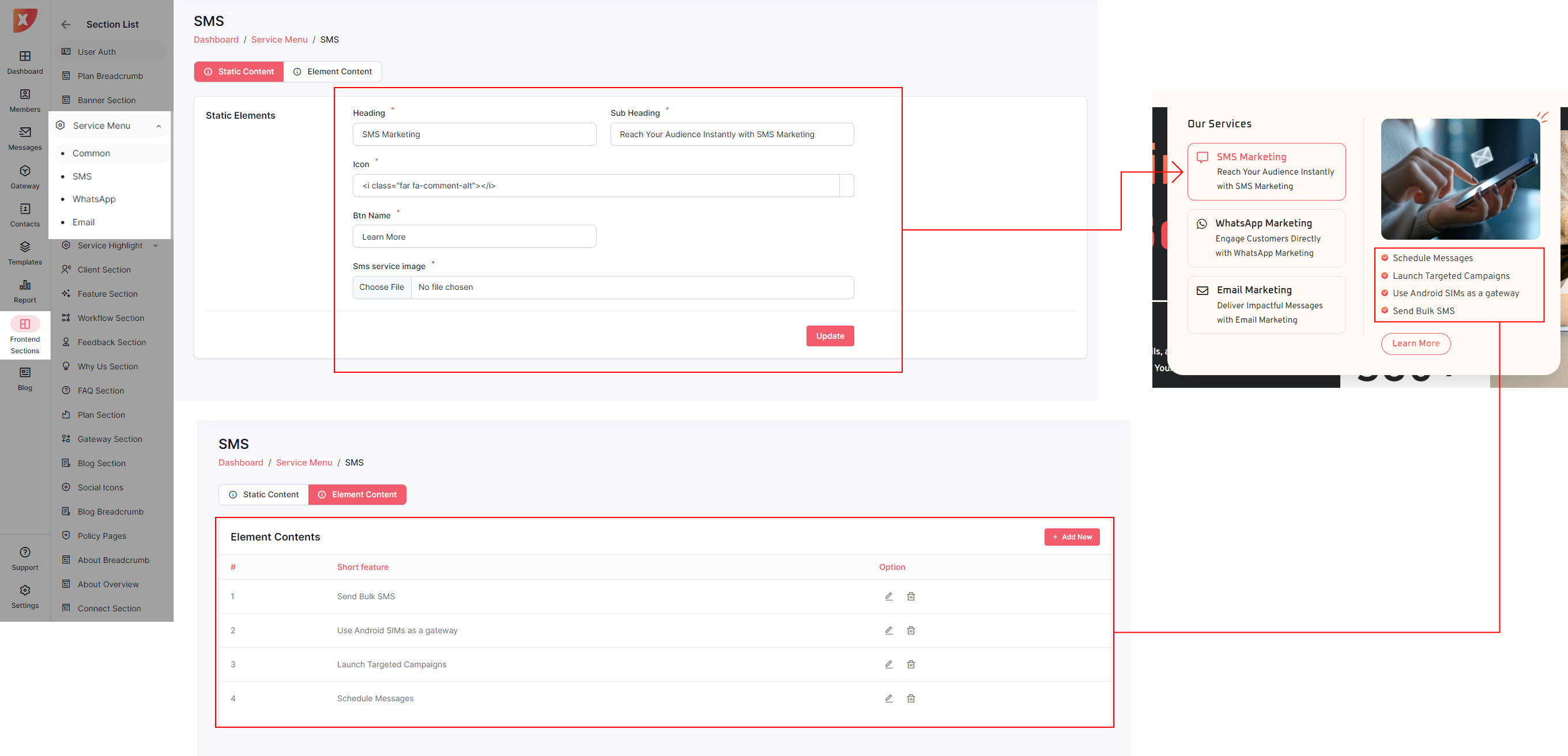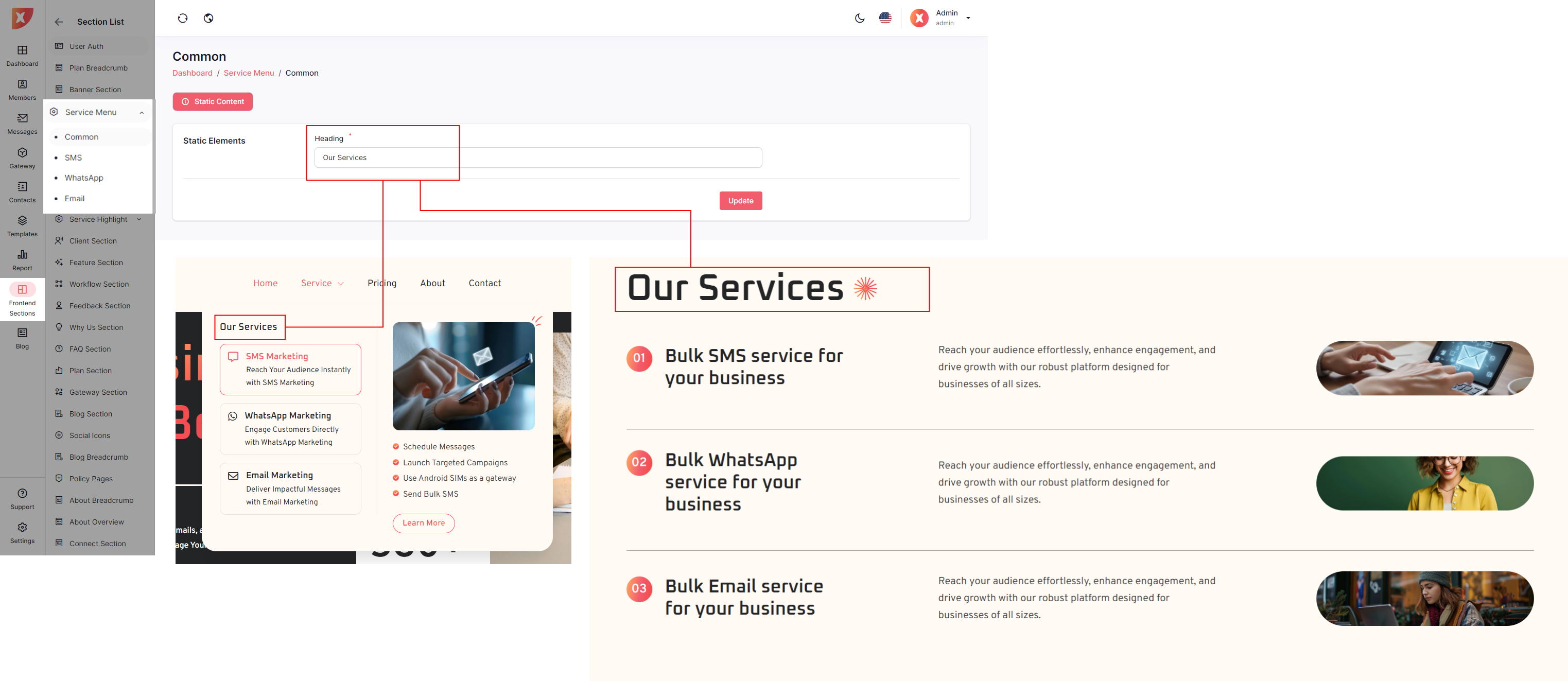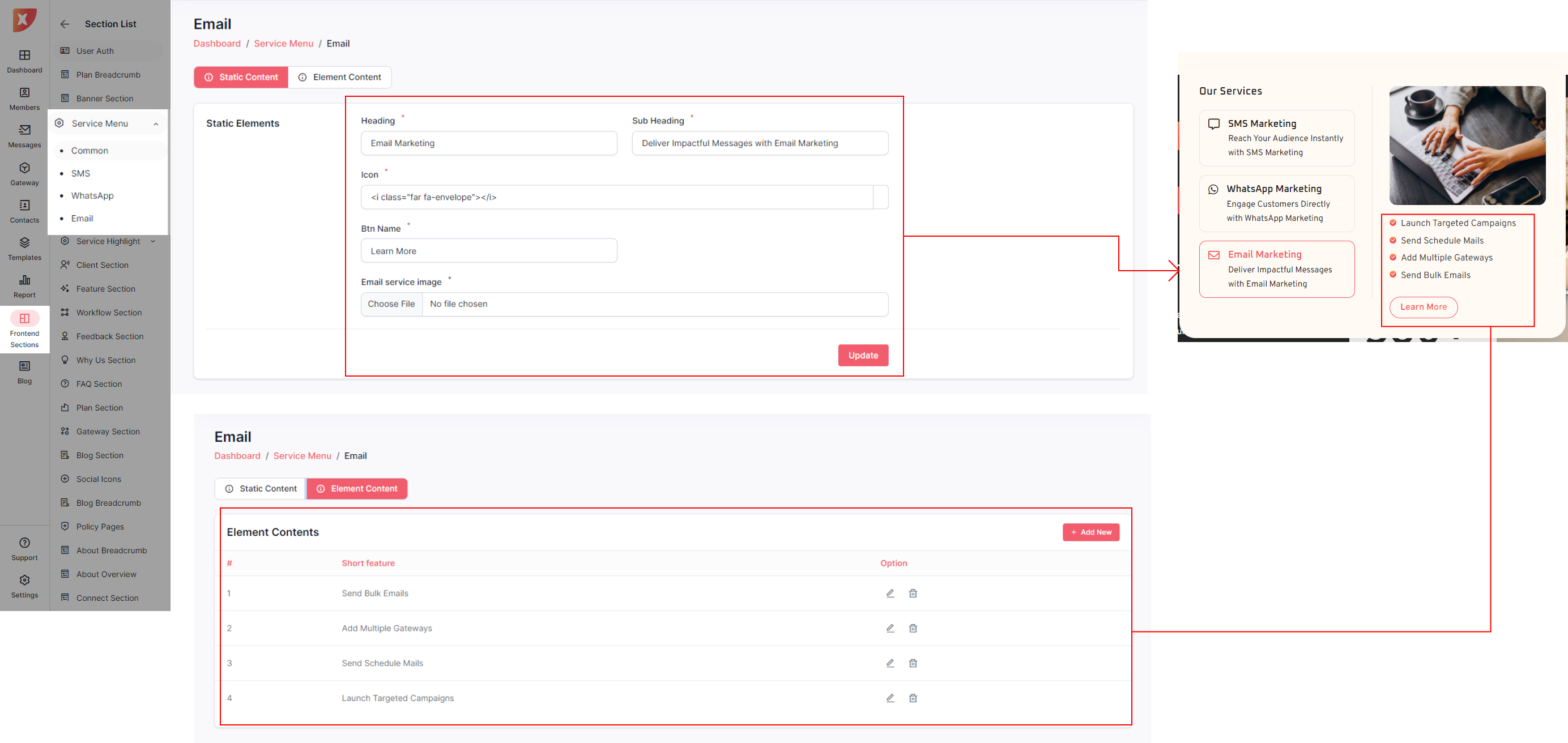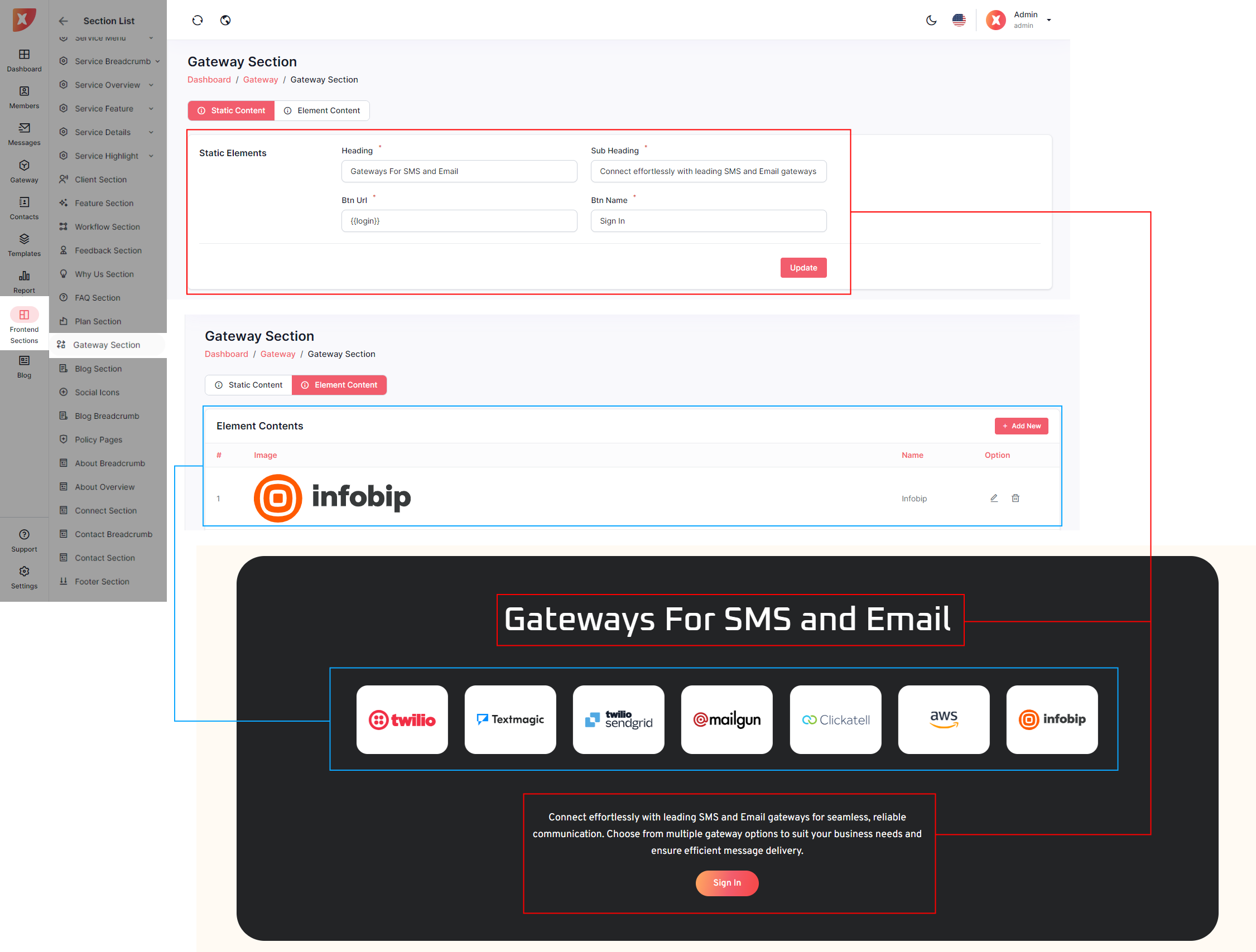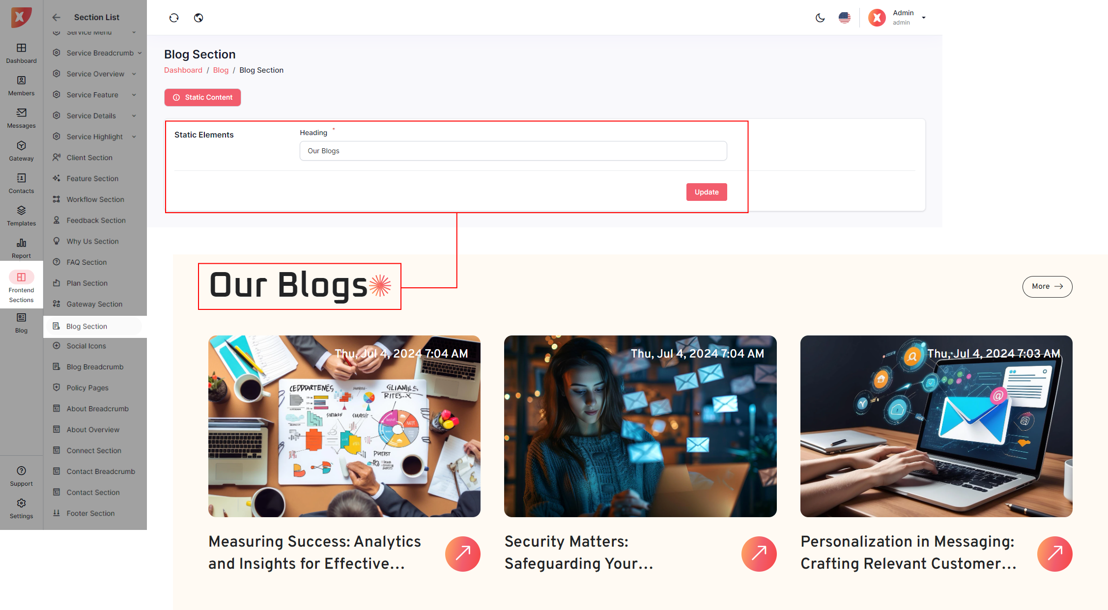Below are the individual sections that can be updated from the Admin Panel, offering admins the flexibility to enhance the landing page according to their specific requirements.