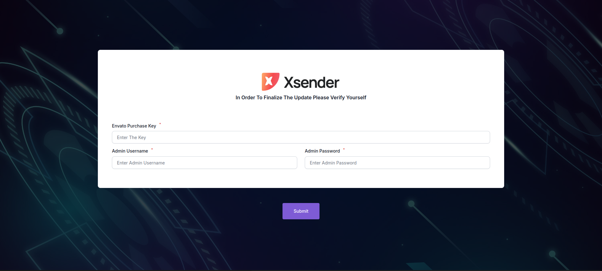 Provide your Envato Purchase key and admin login credentials. After inserting the values click on submit. If your credentials are correct you will get to see the changes made in this update.