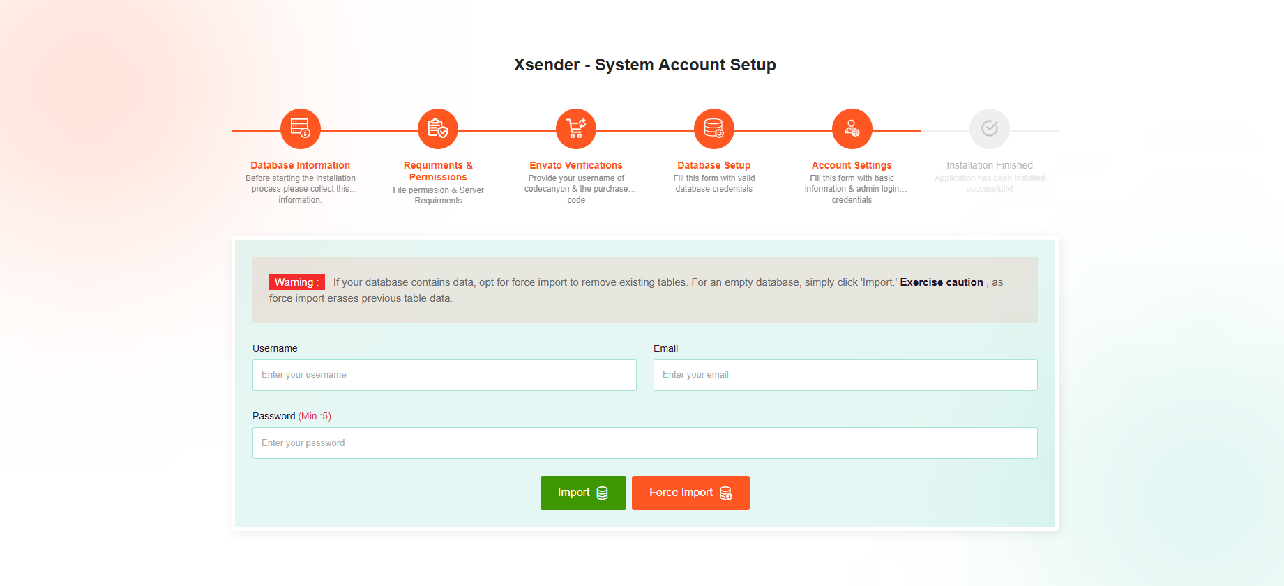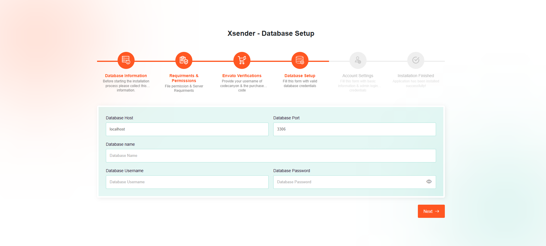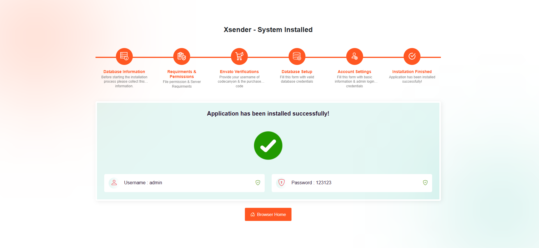 exit; Now your XSender application is ready to installation process by browse your server ip or domain, and follow this steps: