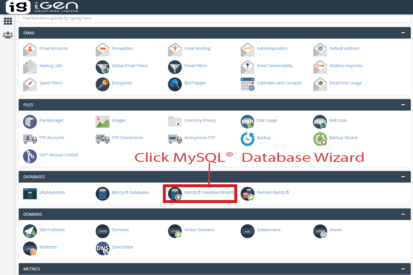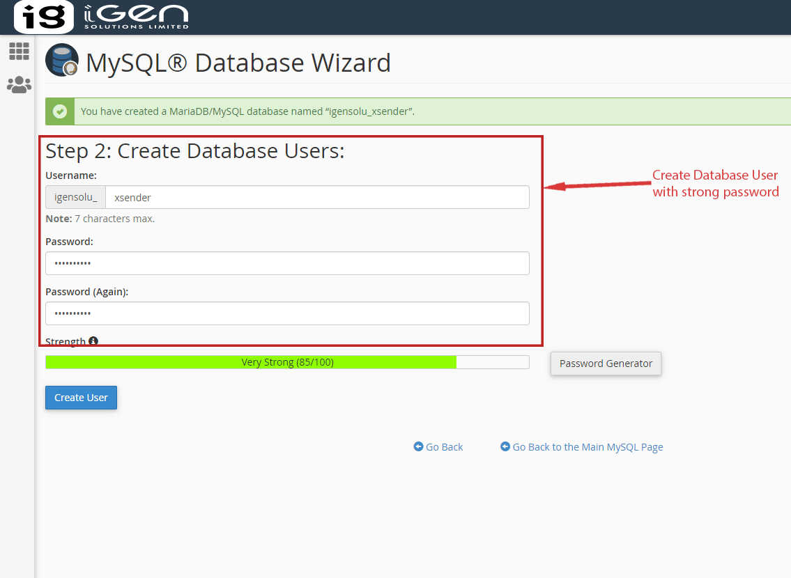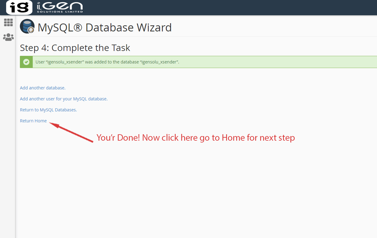 MySQL® Database WizardCreate A database name on the New Database input field then click Next Step