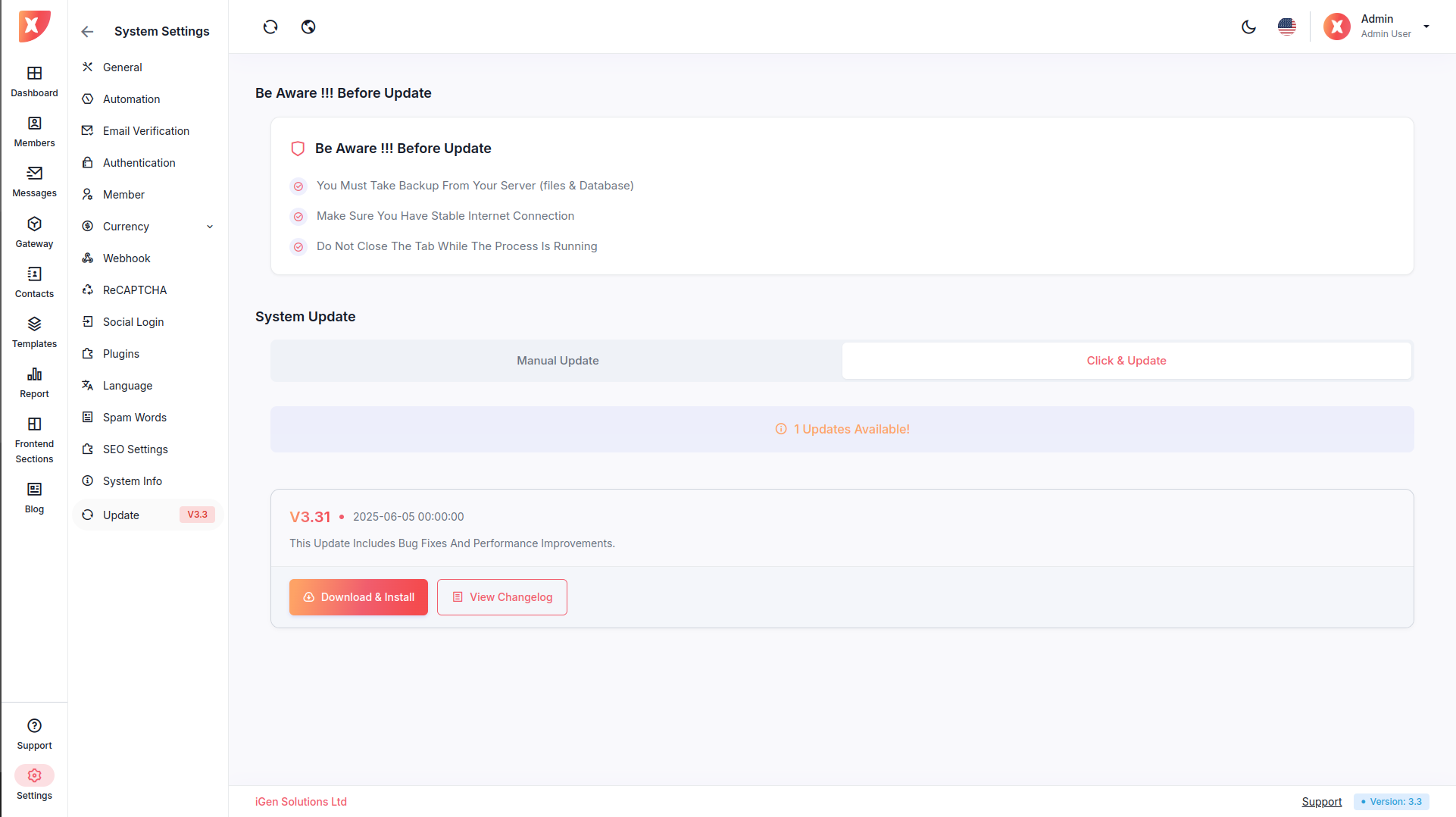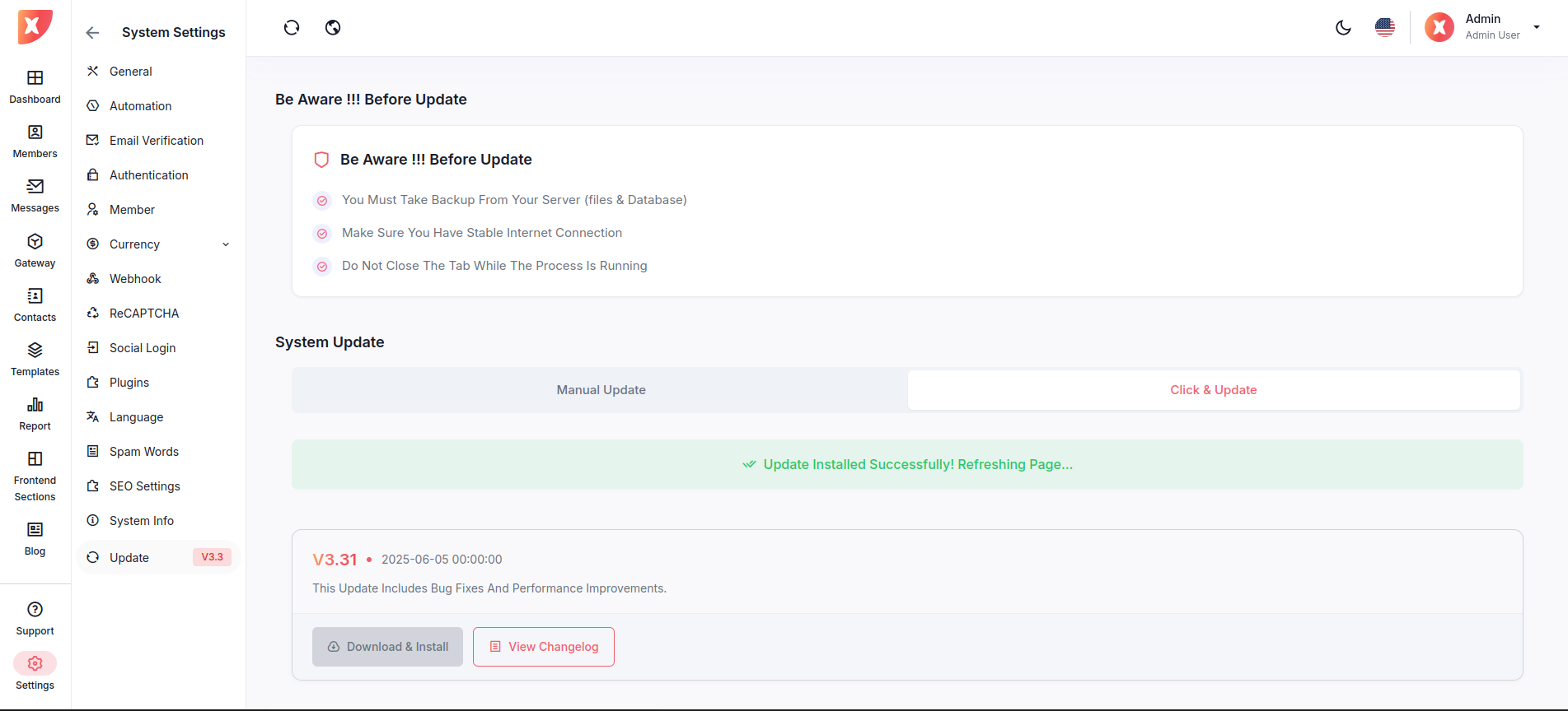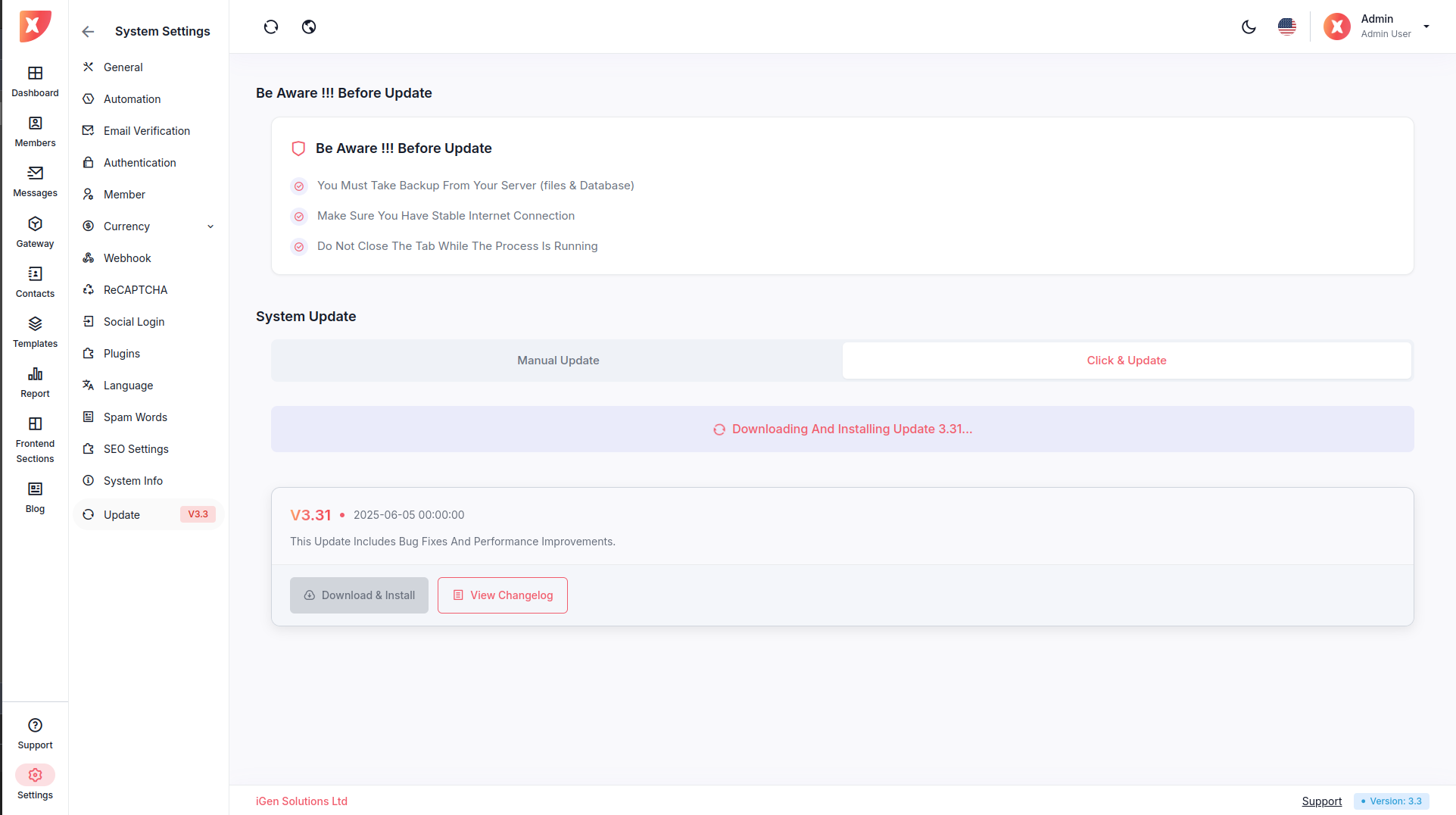 Before starting an update : Ensure you have backed up all server files and databases. Avoid closing the browser tab during the update process. Confirm a stable internet connection.