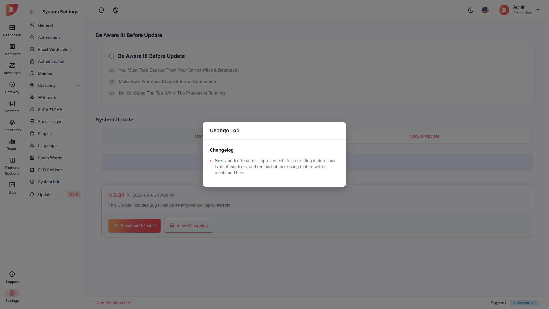 If update version is available, click View Changelog button to see details of the update